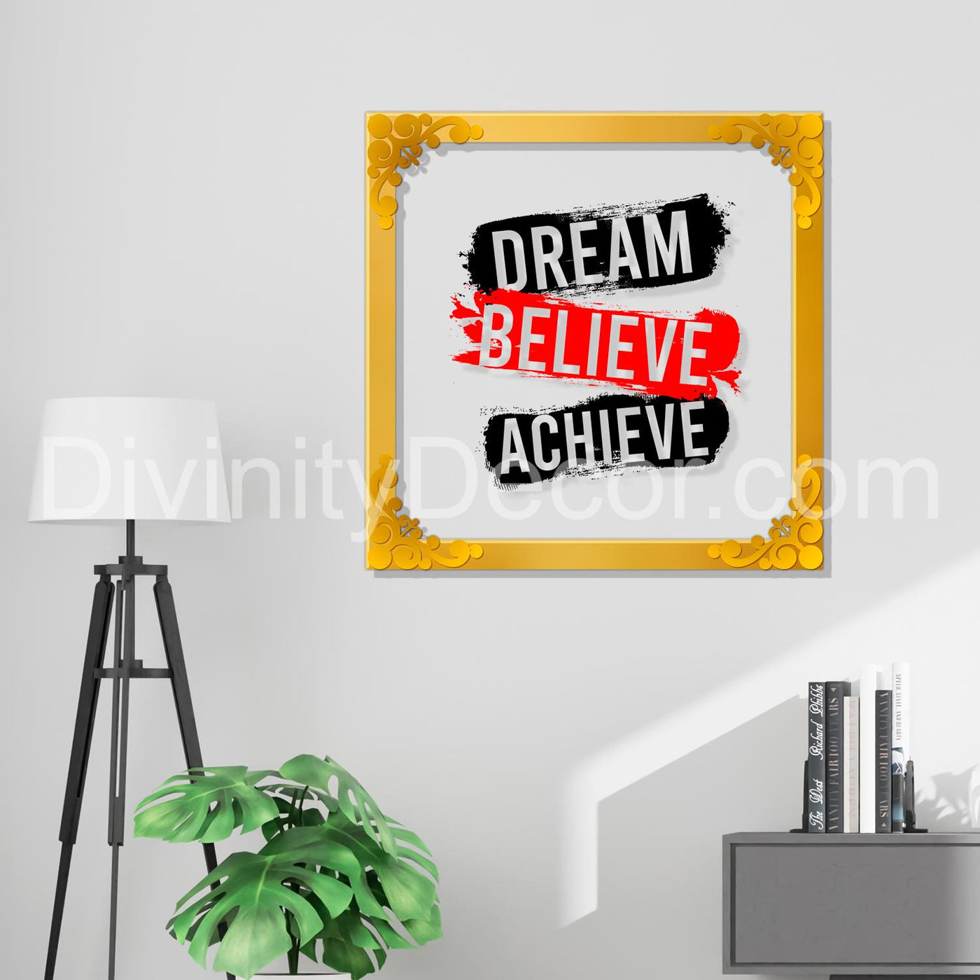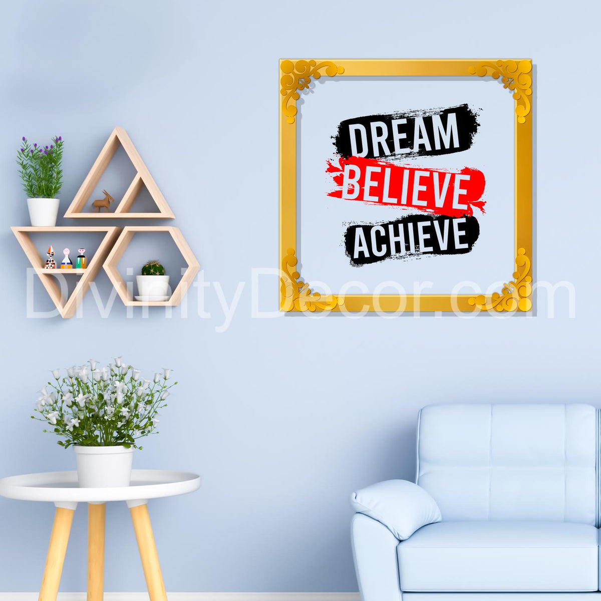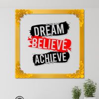 Dream believe achieve Golden Plaque for Gifting, Wall Décor Clear UV print with Golden Border-314 - 8x8 inch