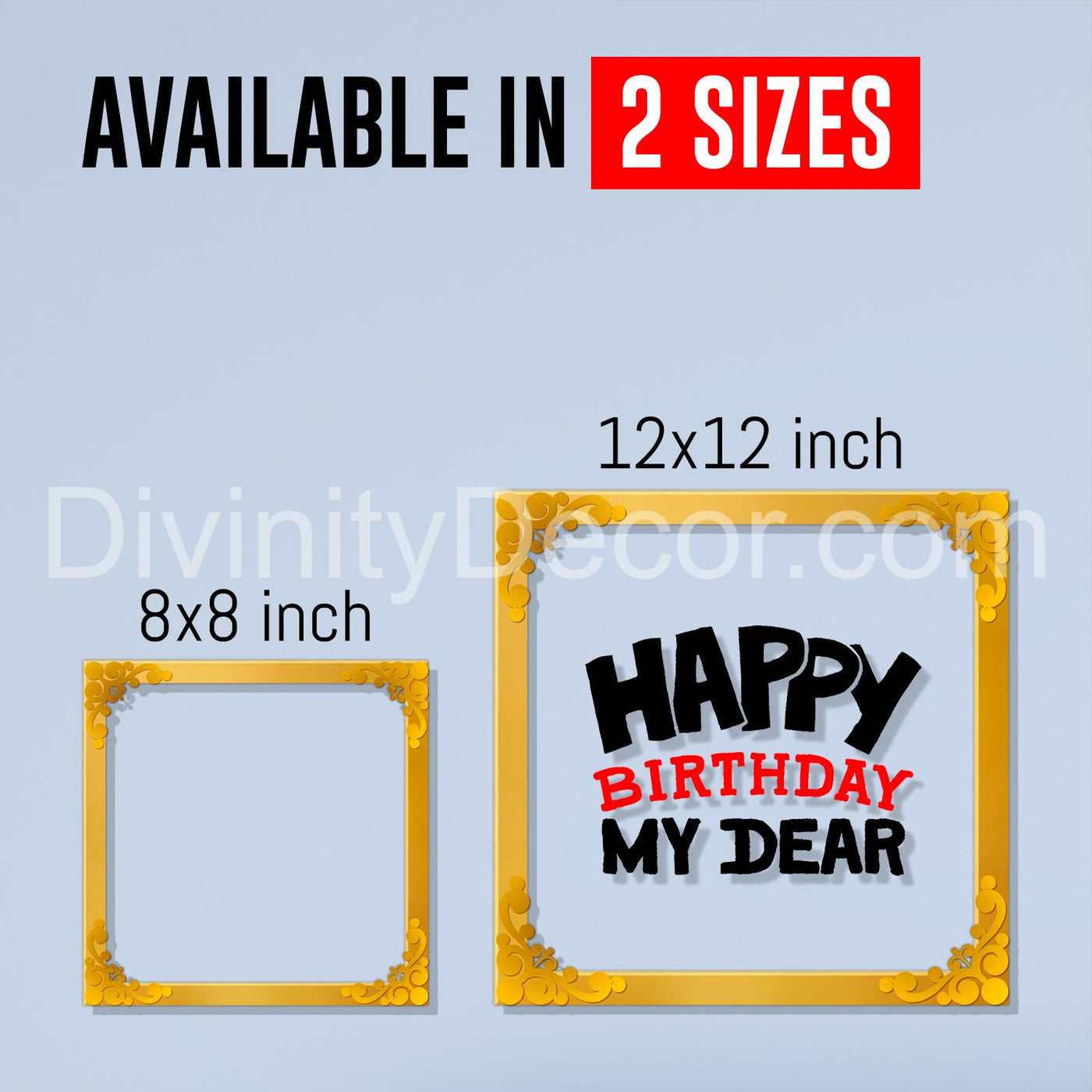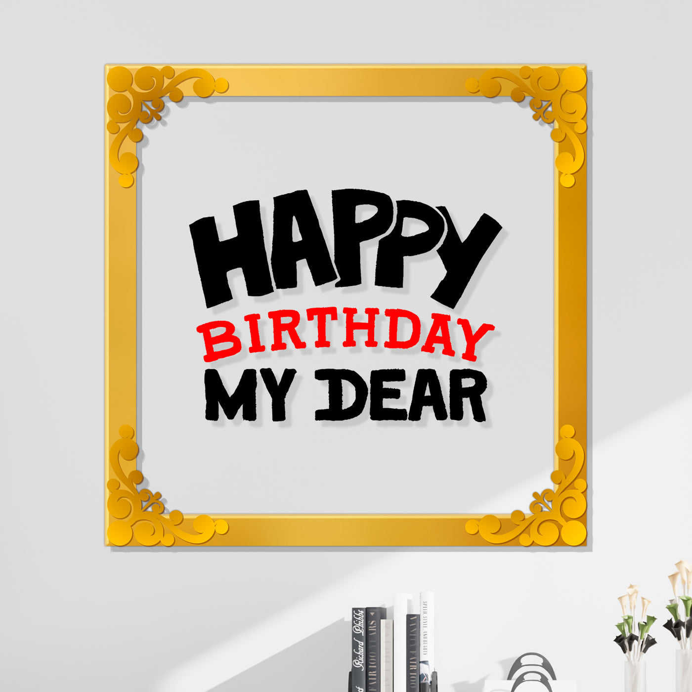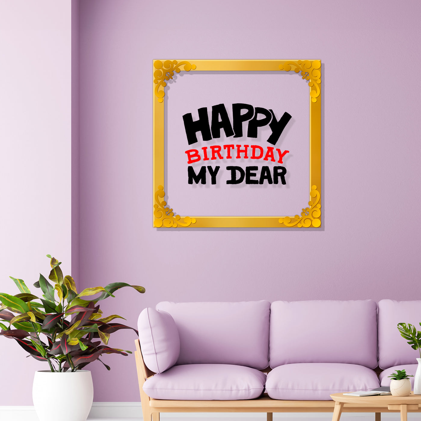 Happy birthday my dear Golden Plaque for Gifting, Wall Décor Clear UV print with Golden Border-316 - 8x8 inch