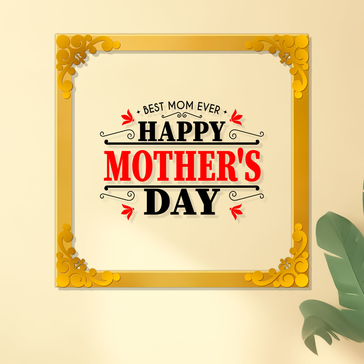 Happy mother's day Golden Plaque for Gifting, Wall Décor Clear UV print with Golden Border-315