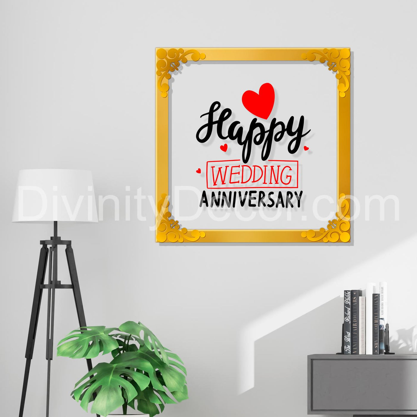 Happy wedding anniversary Golden Plaque for Gifting, Wall Décor Clear UV print with Golden Border-294