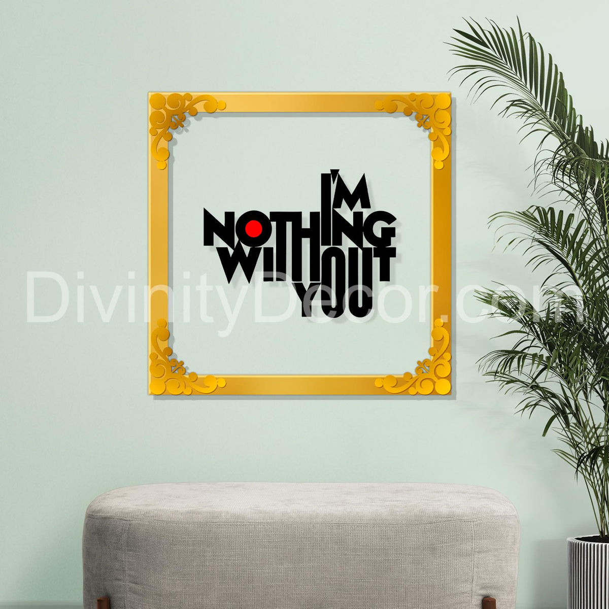 I'm nothing without you Golden Plaque for Gifting, Wall Décor Clear UV print with Golden Border -2 - 8x8 inch