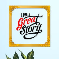 Live a great story Golden Plaque for Gifting, Wall Decor Clear UV print with Golden Border-37