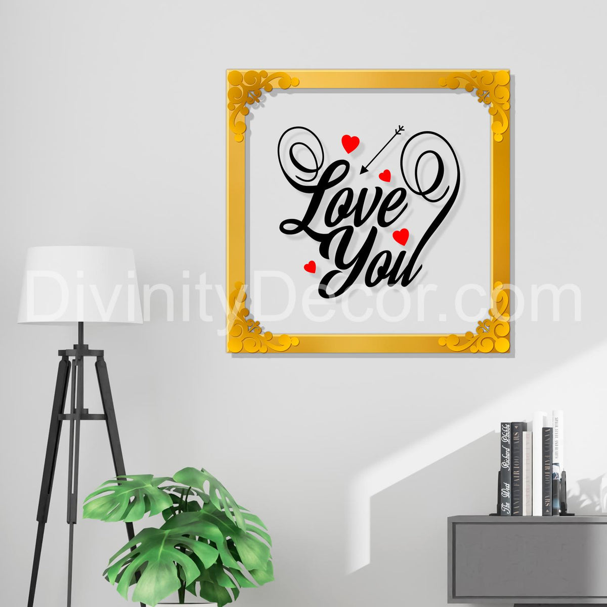 Love you Golden Plaque for Gifting, Wall Décor Clear UV print with Golden Border-296 - 8x8 inch