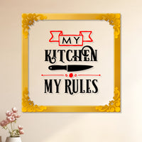 My kitchen my rules Golden Plaque for Gifting, Wall Decor Clear UV print with Golden Border-61