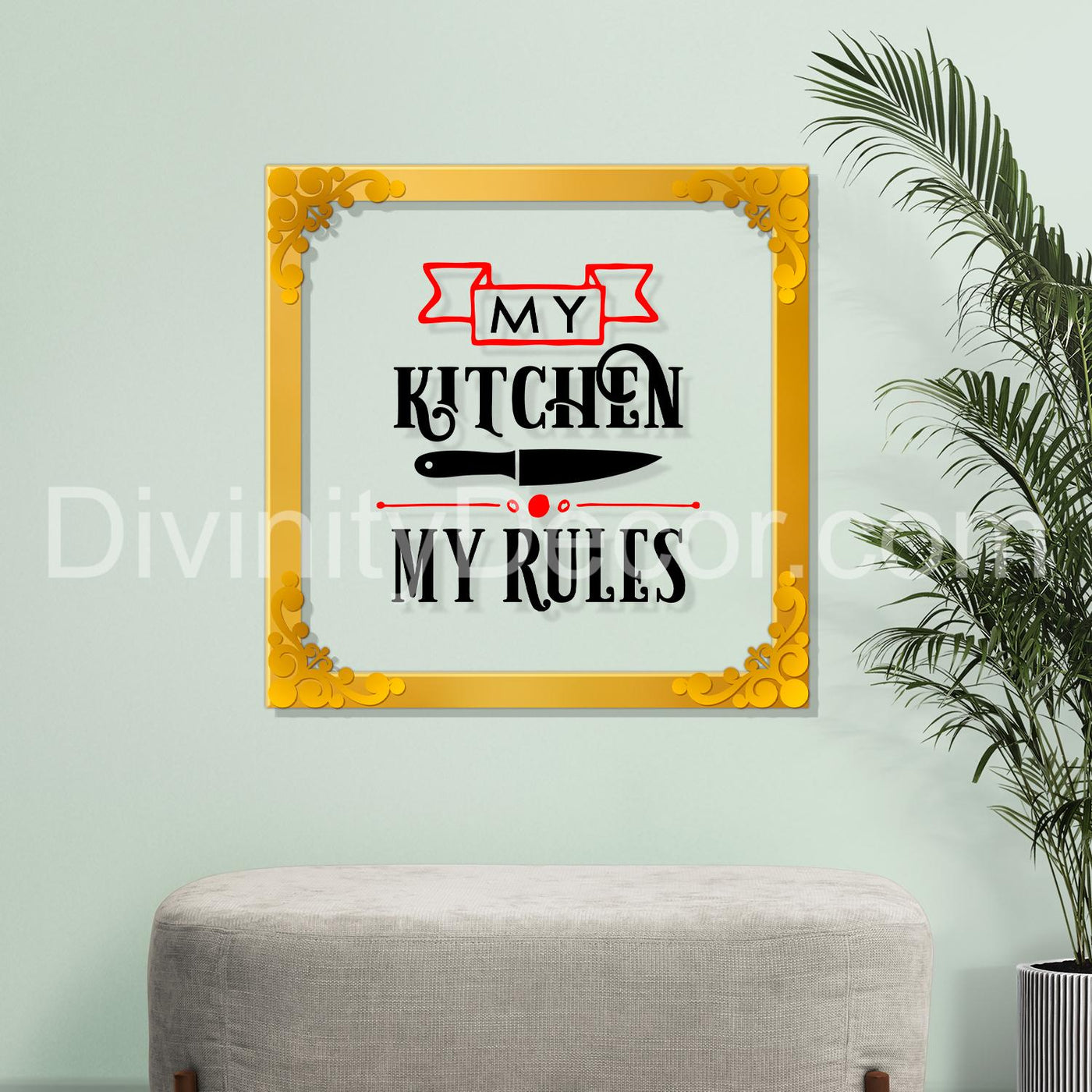 My kitchen my rules Golden Plaque for Gifting, Wall Decor Clear UV pri – Divinity Decor index