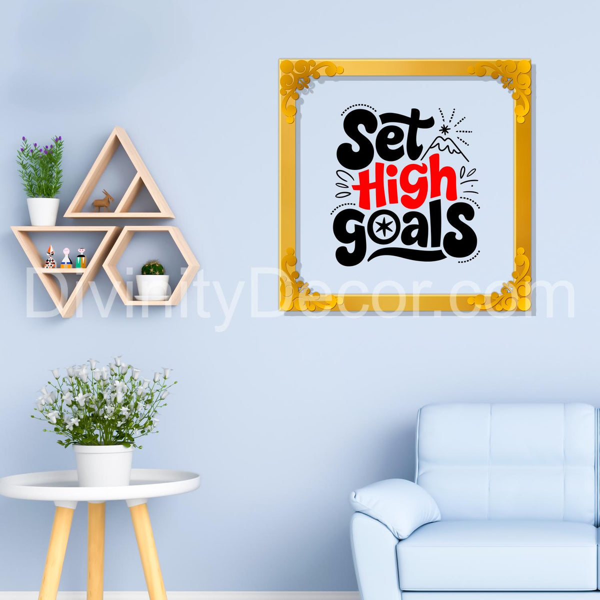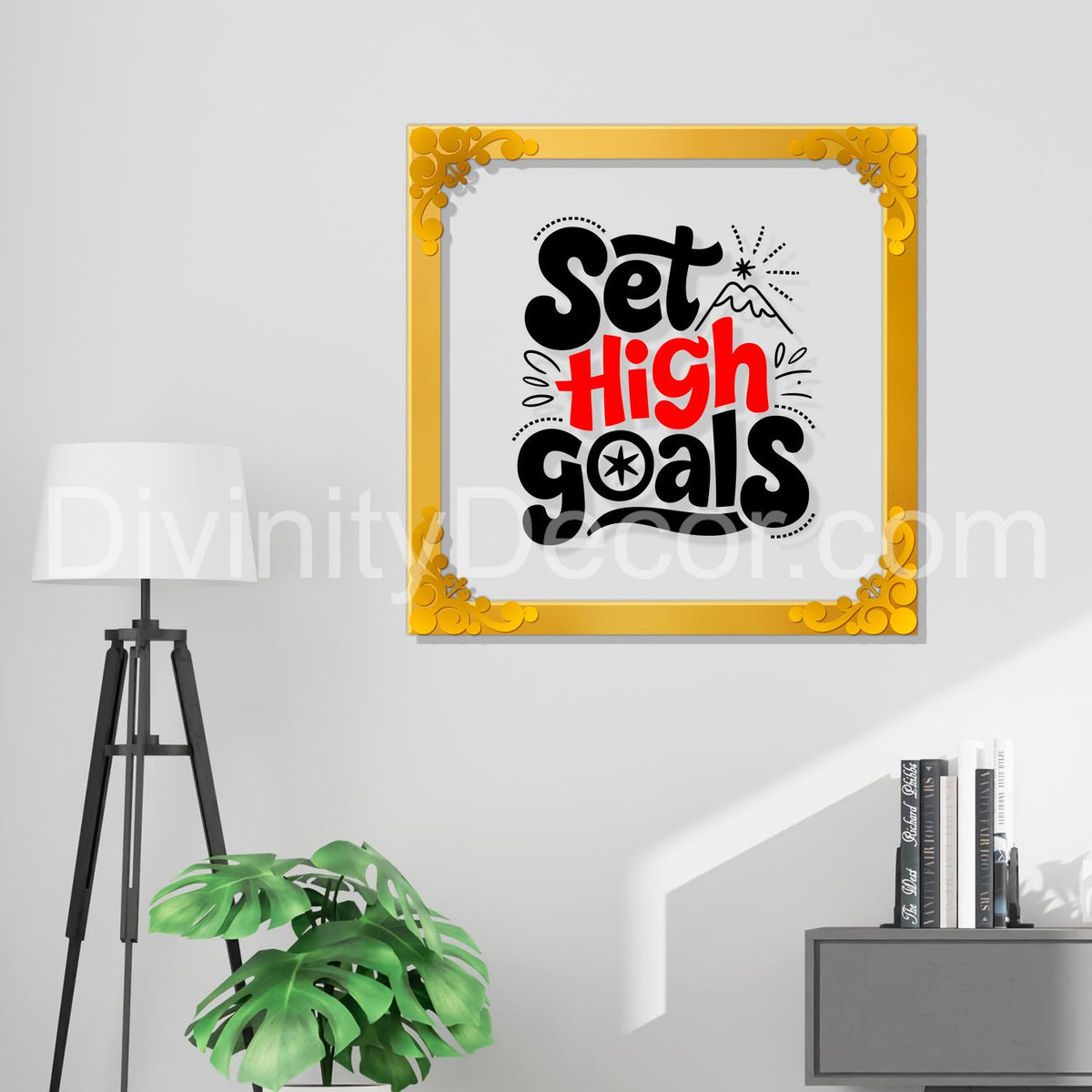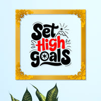 Set high goals Golden Plaque for Gifting, Wall Décor Clear UV print with Golden Border-307 - 8x8 inch
