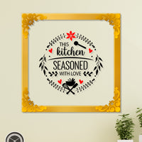 The kitchen seasoned with love Golden Plaque for Gifting, Wall Décor Clear UV print with Golden Border-322 - 8x8 inch