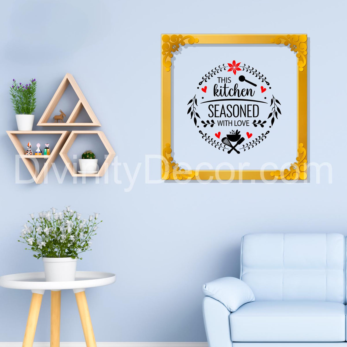 The kitchen seasoned with love Golden Plaque for Gifting, Wall Décor Clear UV print with Golden Border-322