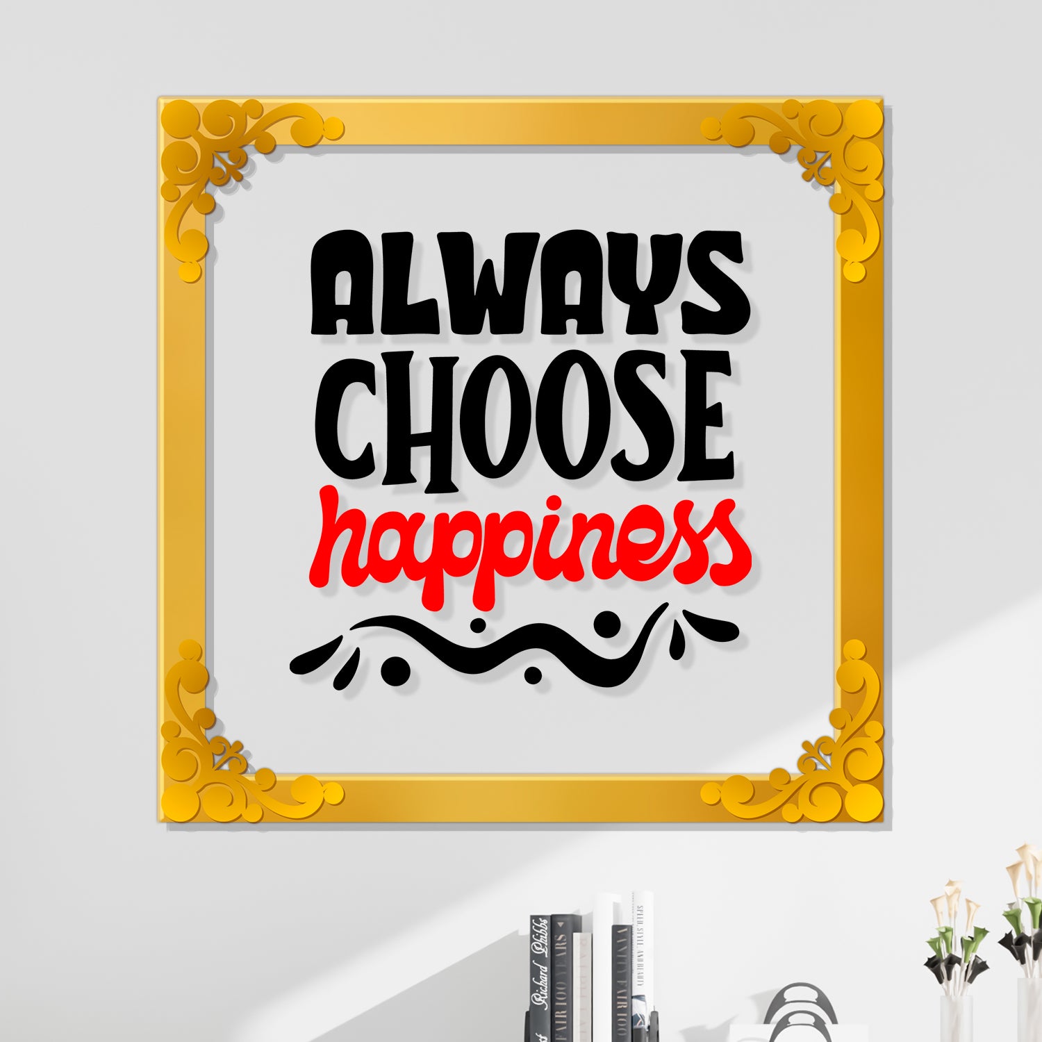 Always choose happiness Golden Plaque for Gifting, Wall Décor Clear UV print with Golden Border-306 - 8x8 inch