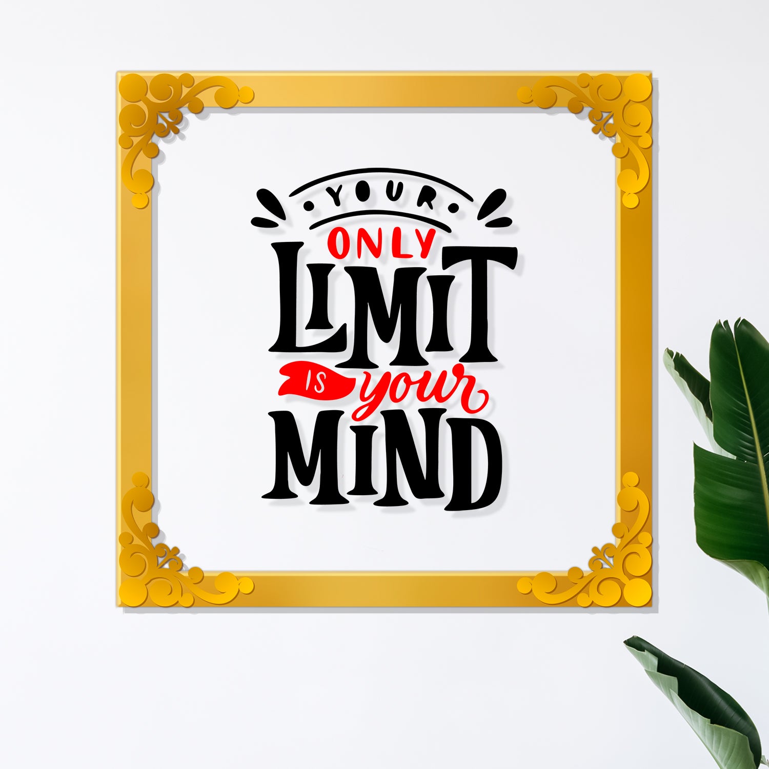 Only limit your mind Golden Plaque for Gifting, Wall Décor Clear UV print with Golden Border-130 - 8x8 inch