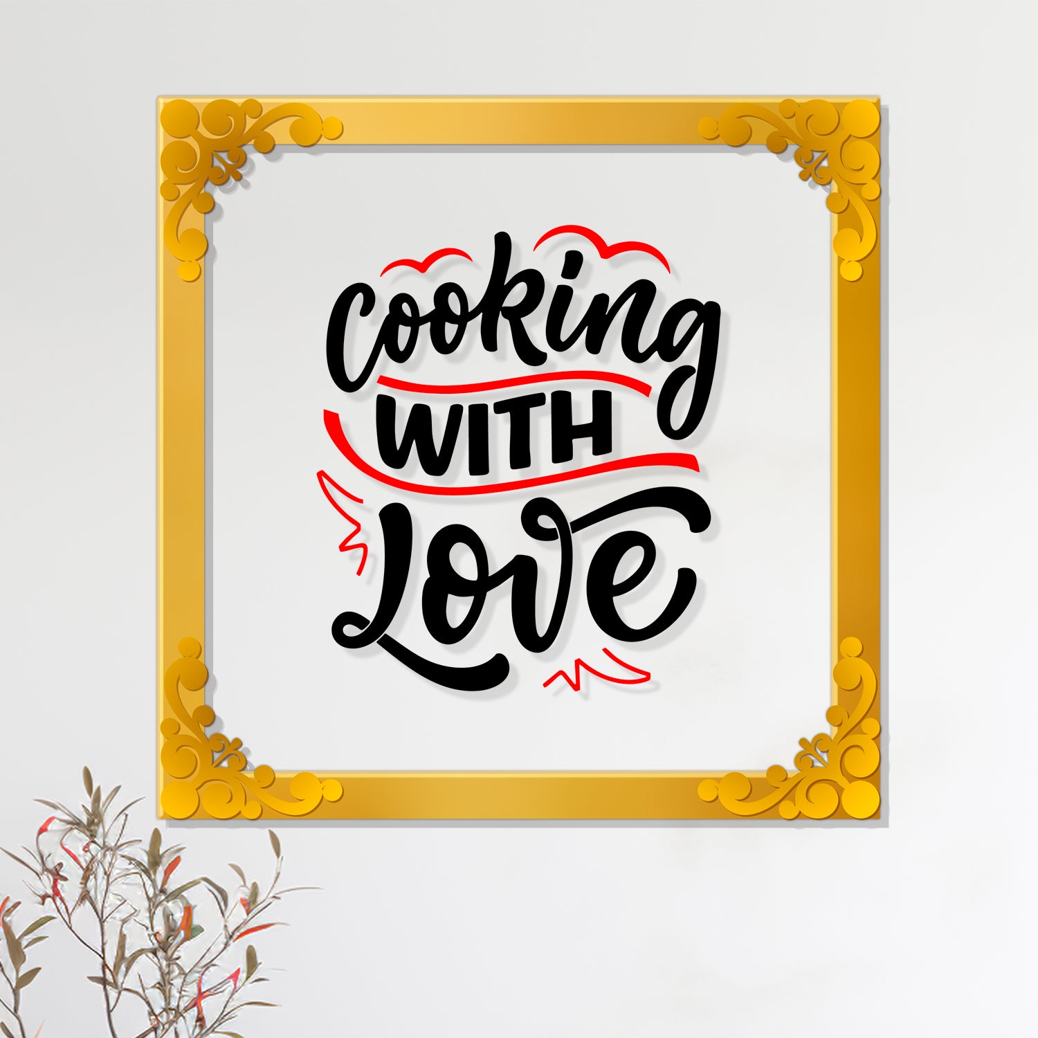 Cooking with love Golden Plaque for Gifting, Wall Decor Clear UV print with Golden Border-99 - 8x8 inch