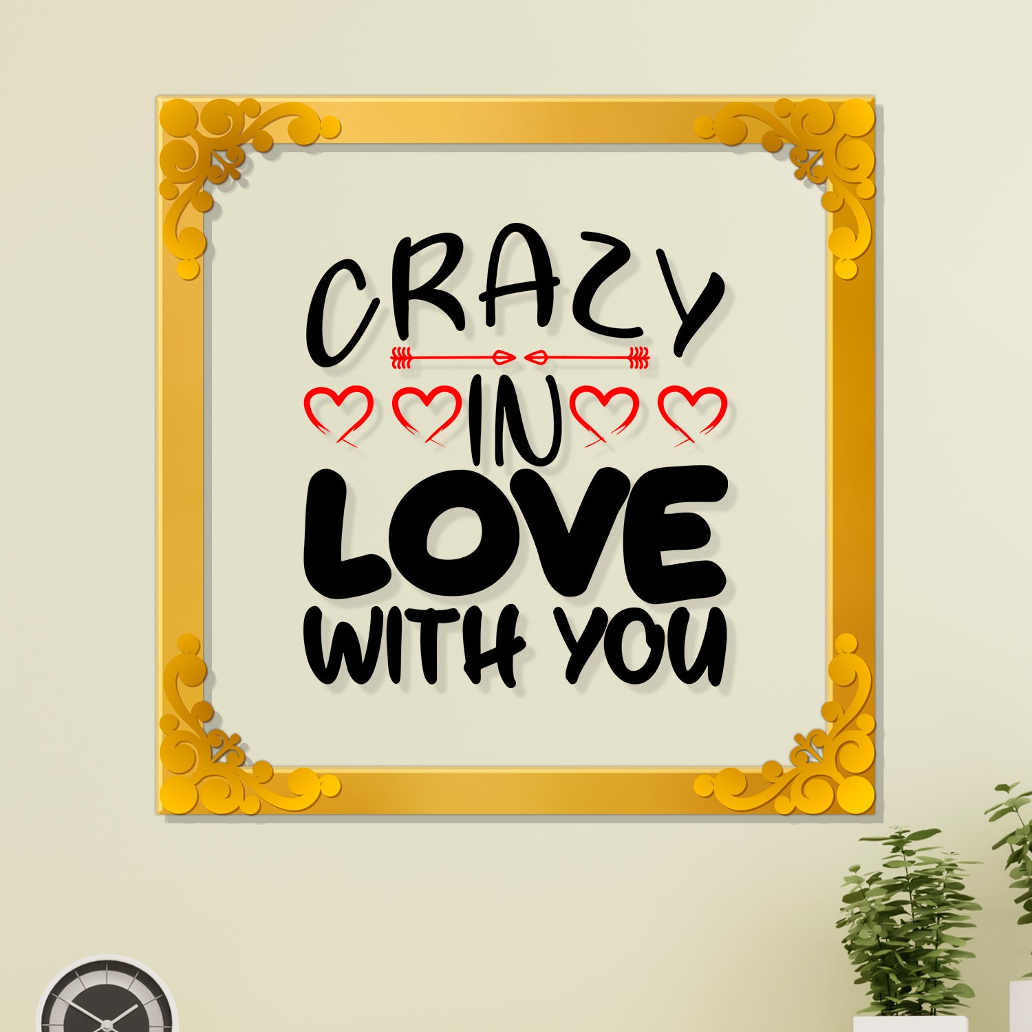 Crazy in love with you Golden Plaque for Gifting, Wall Décor Clear UV print with Golden Border-242 - 8x8 inch