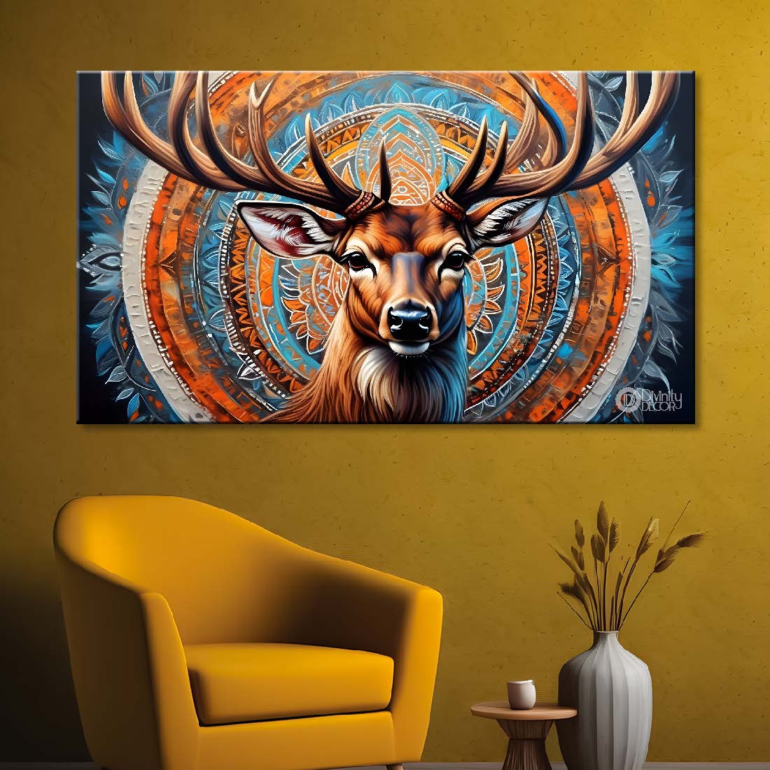 Deer with colorful textured background art - Design - Animal -178 - Without Frame - Only Printed Canvas / 18x30 inch
