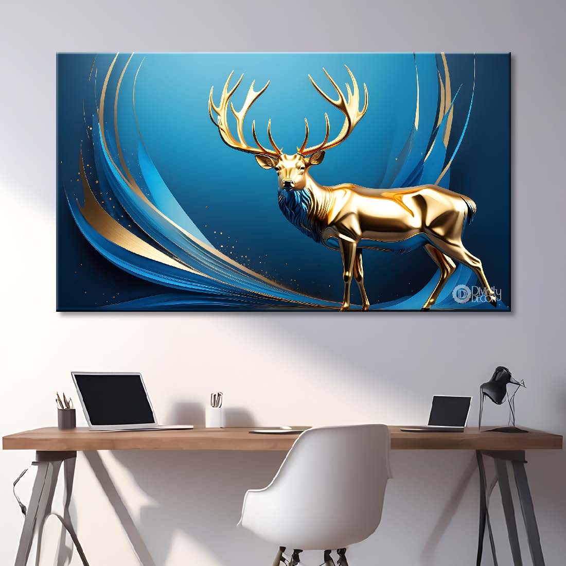 Deer with navy blue textured background art.- Design - Animal -112 - Without Frame - Only Printed Canvas / 18x30 inch