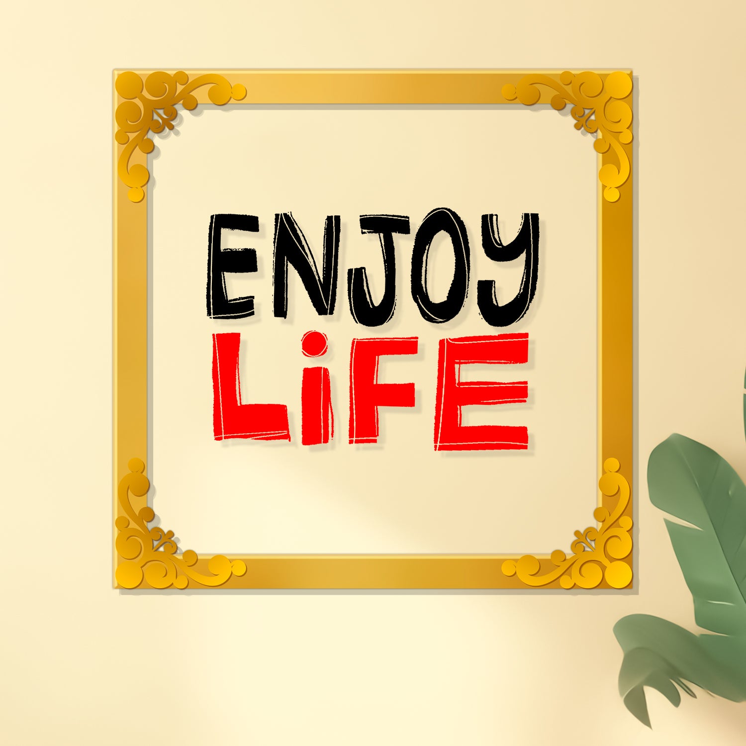 Enjoy life Golden Plaque for Gifting, Wall Décor Clear UV print with Golden Border-275 - 8x8 inch