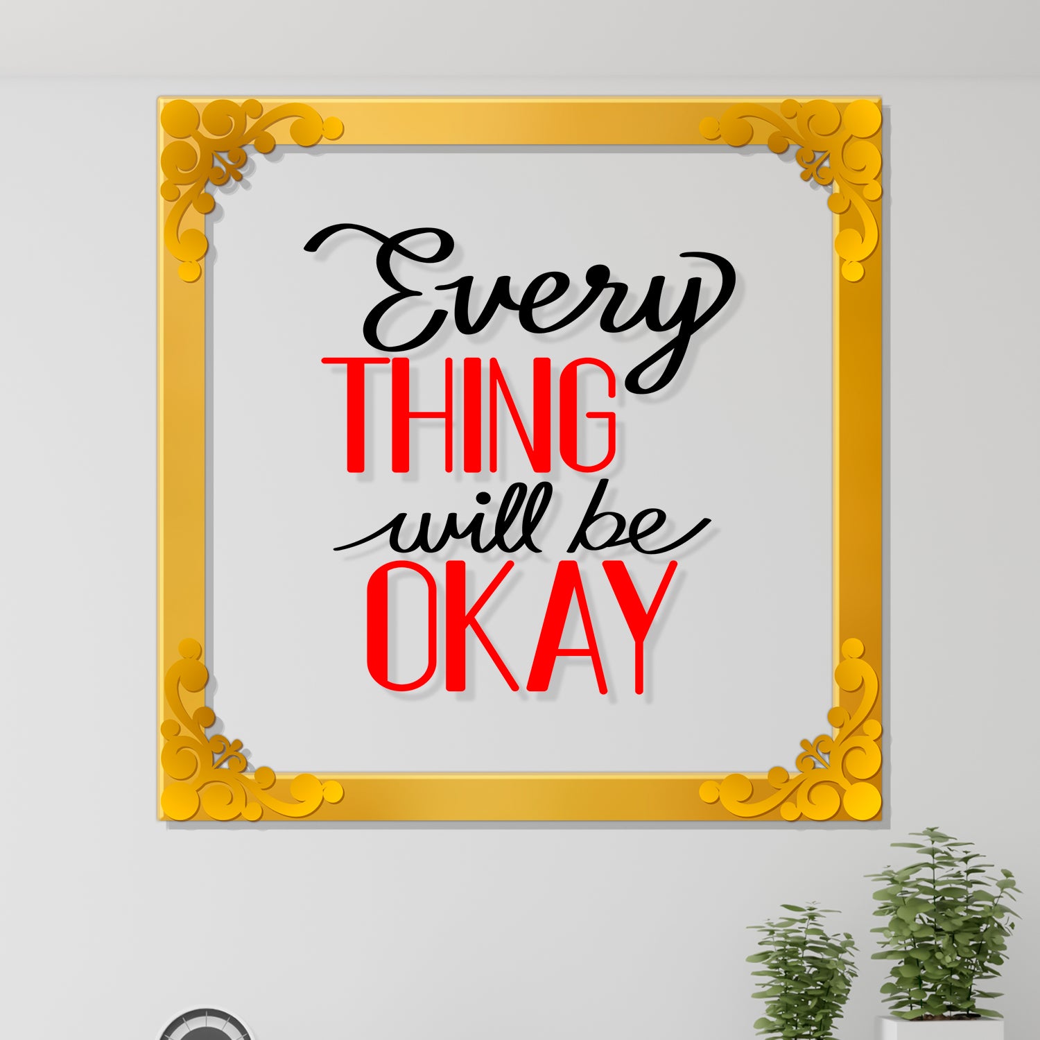 Every thing will be okay Golden Plaque for Gifting, Wall Décor Clear UV print with Golden Border-324 - 8x8 inch