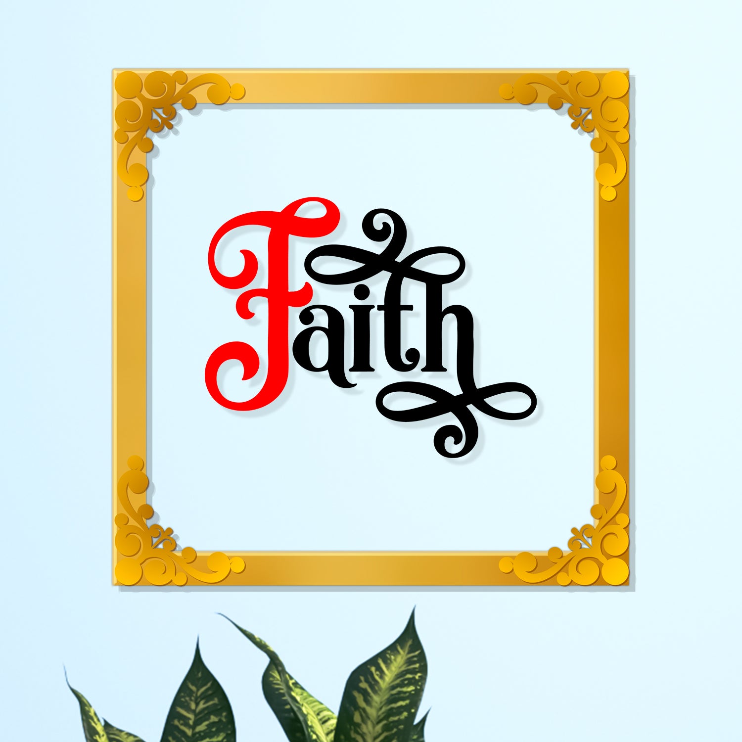 Faith Golden Plaque for Gifting, Wall Decor Clear UV print with Golden Border -7 - 8x8 inch