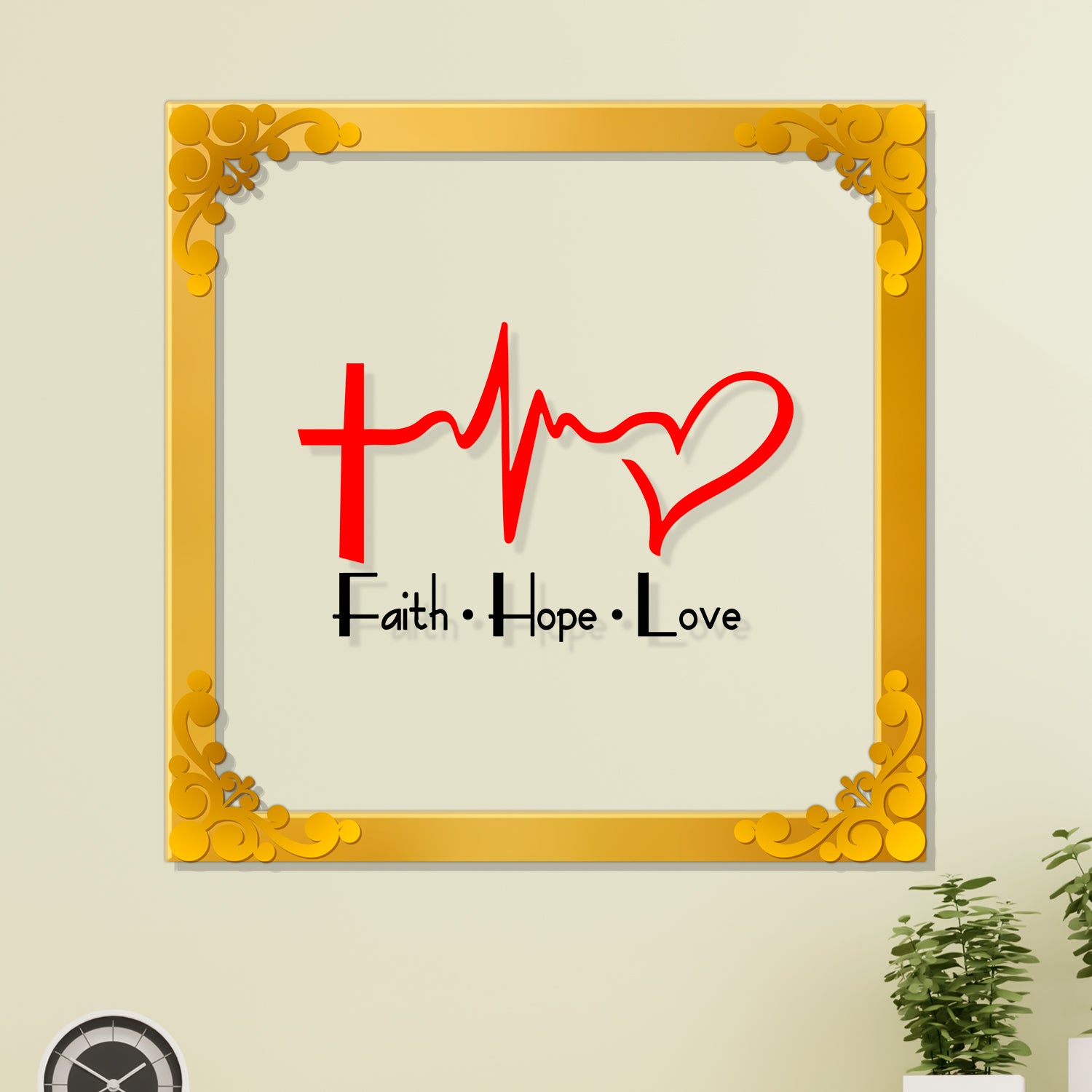 Faith hope love Golden Plaque for Gifting, Wall Decor Clear UV print with Golden Border-42 - 8x8 inch