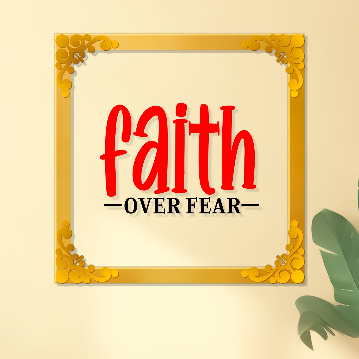 Faith over fear Golden Plaque for Gifting, Wall Decor Clear UV print with Golden Border-155 - 8x8 inch