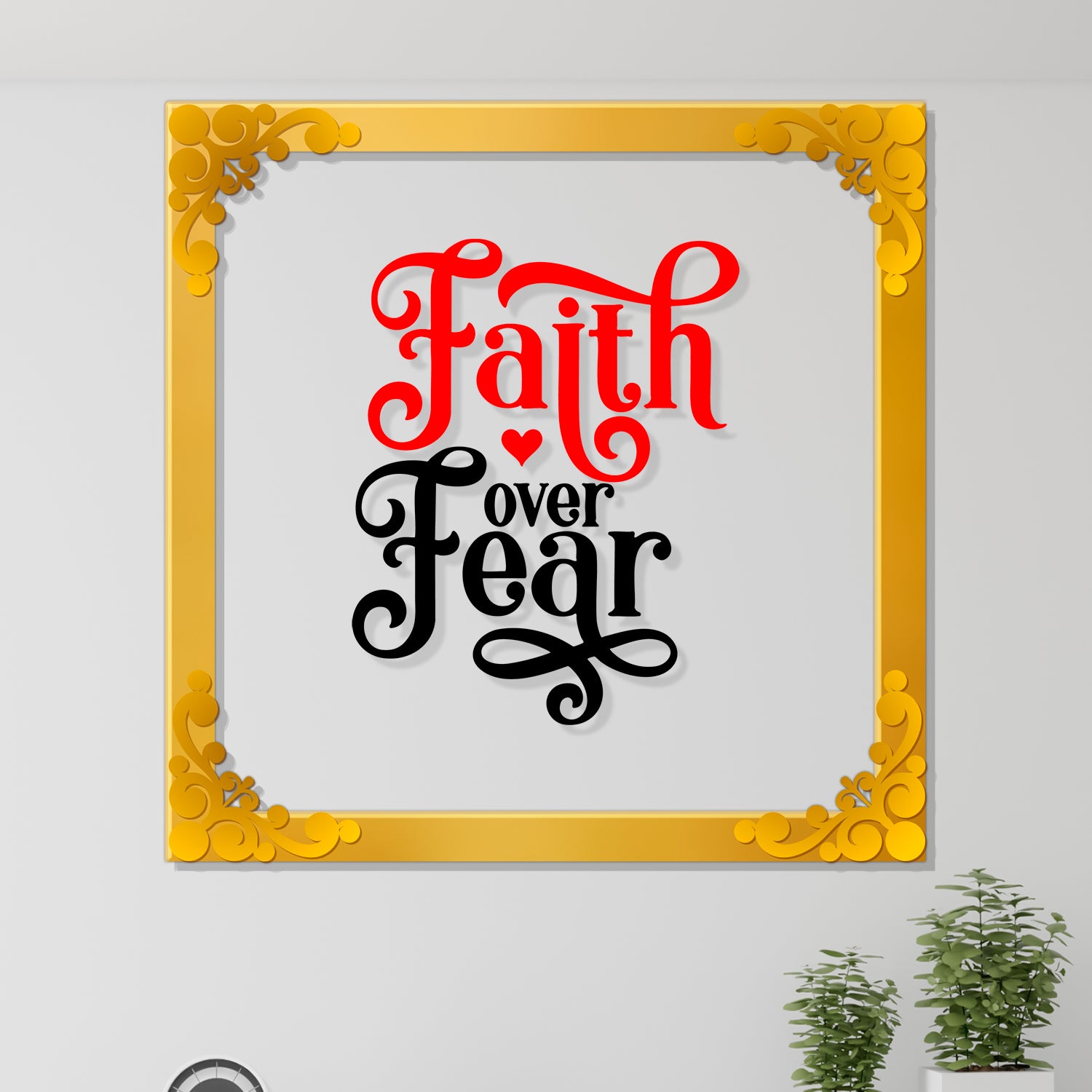 Faith over fear Golden Plaque for Gifting, Wall Decor Clear UV print with Golden Border-44 - 8x8 inch