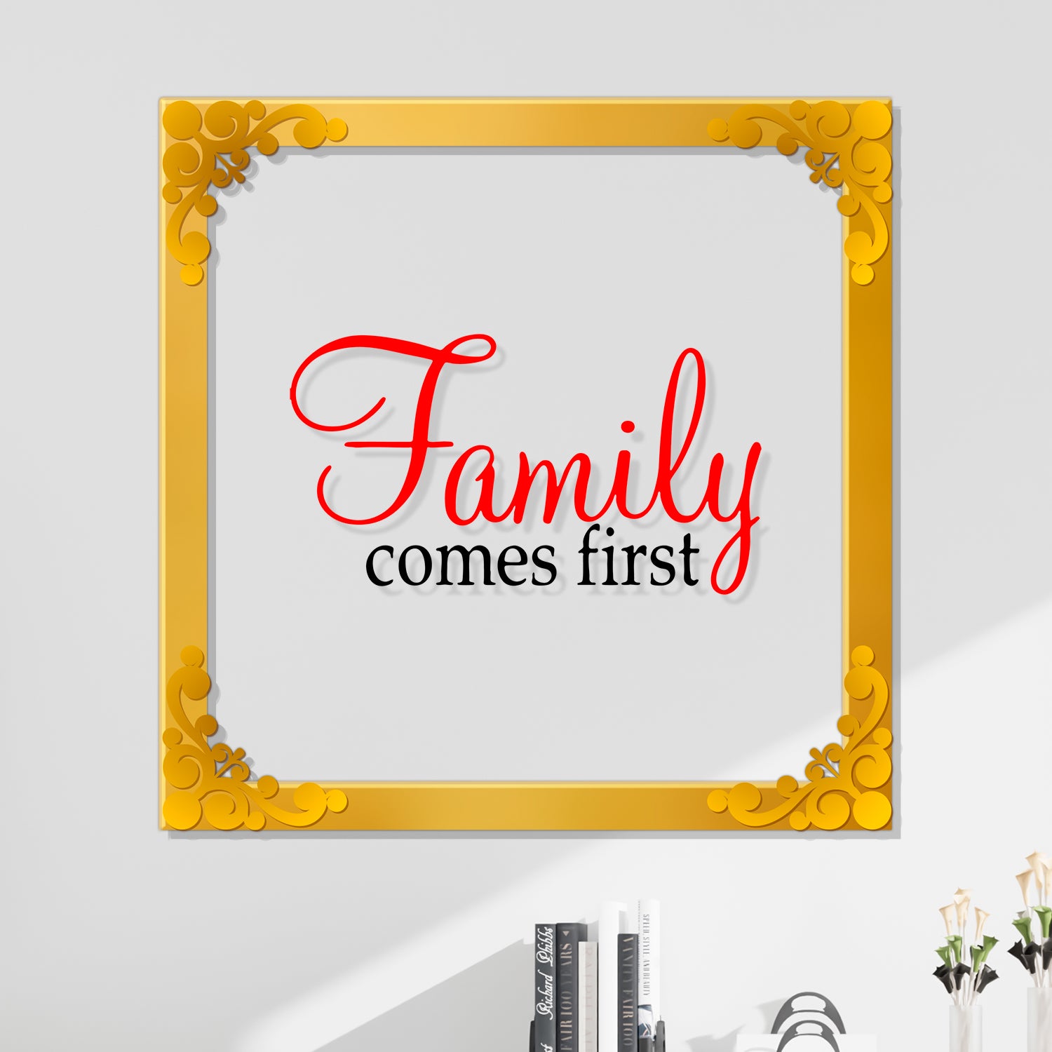 Family comes first Golden Plaque for Gifting, Wall Decor Clear UV print with Golden Border-156 - 8x8 inch