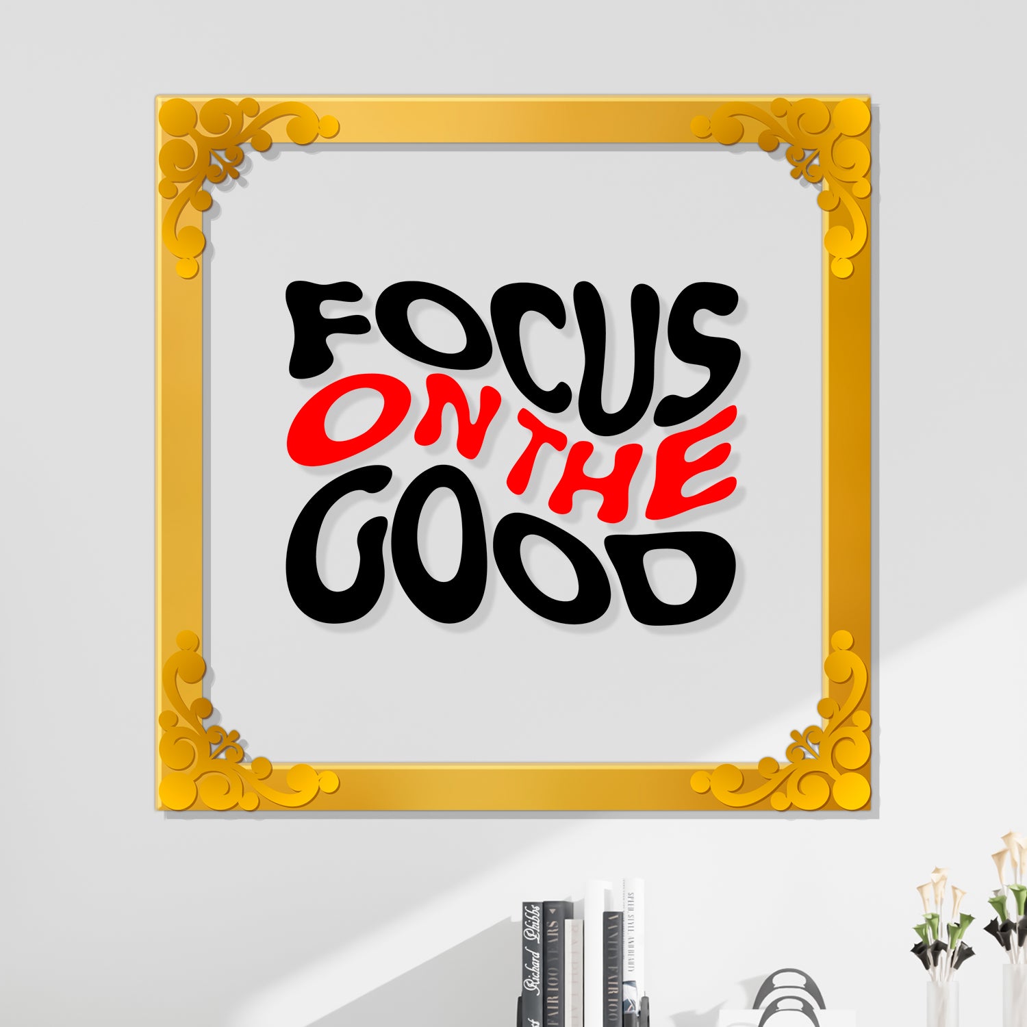 Focus on the good Golden Plaque for Gifting, Wall Decor Clear UV print with Golden Border-186 - 8x8 inch