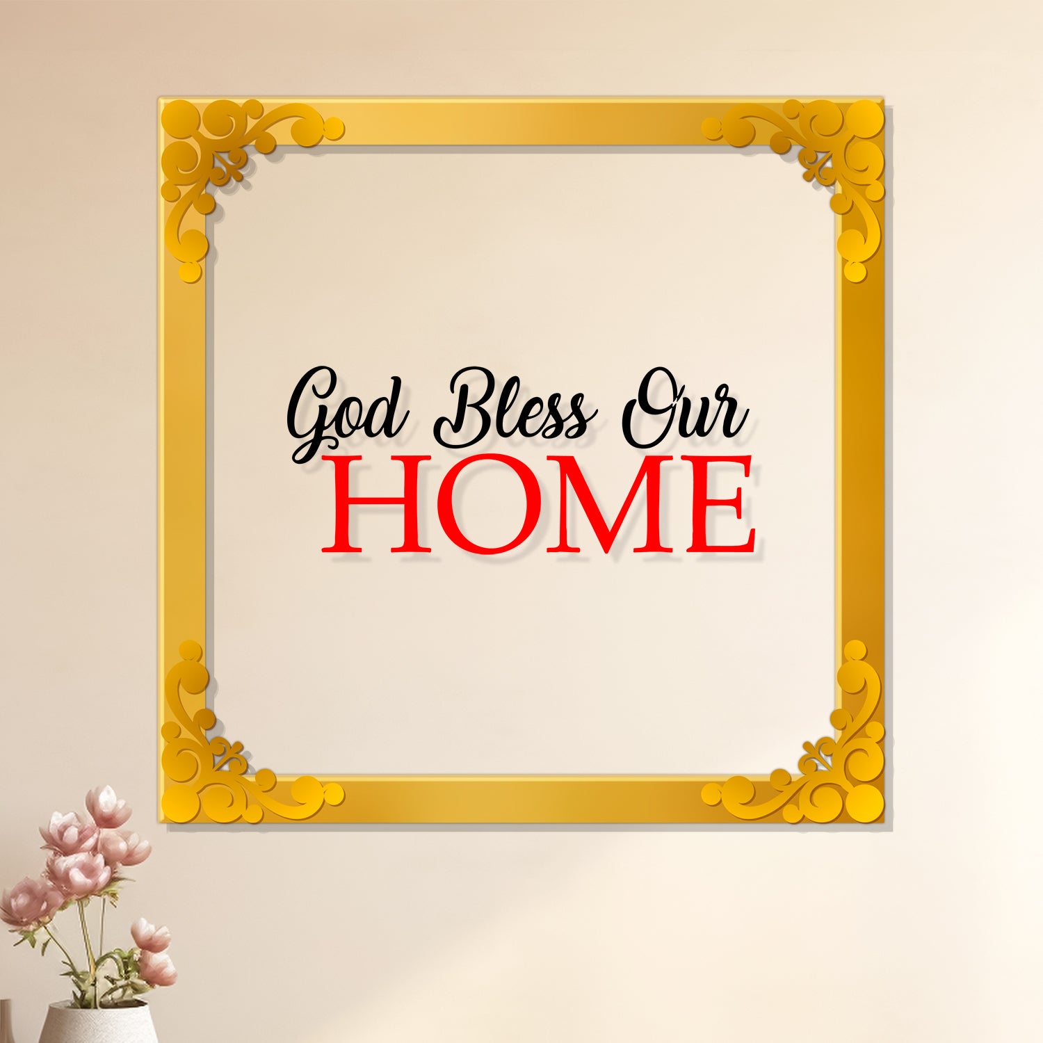 God bless our home Golden Plaque for Gifting, Wall Decor Clear UV print with Golden Border-161 - 8x8 inch