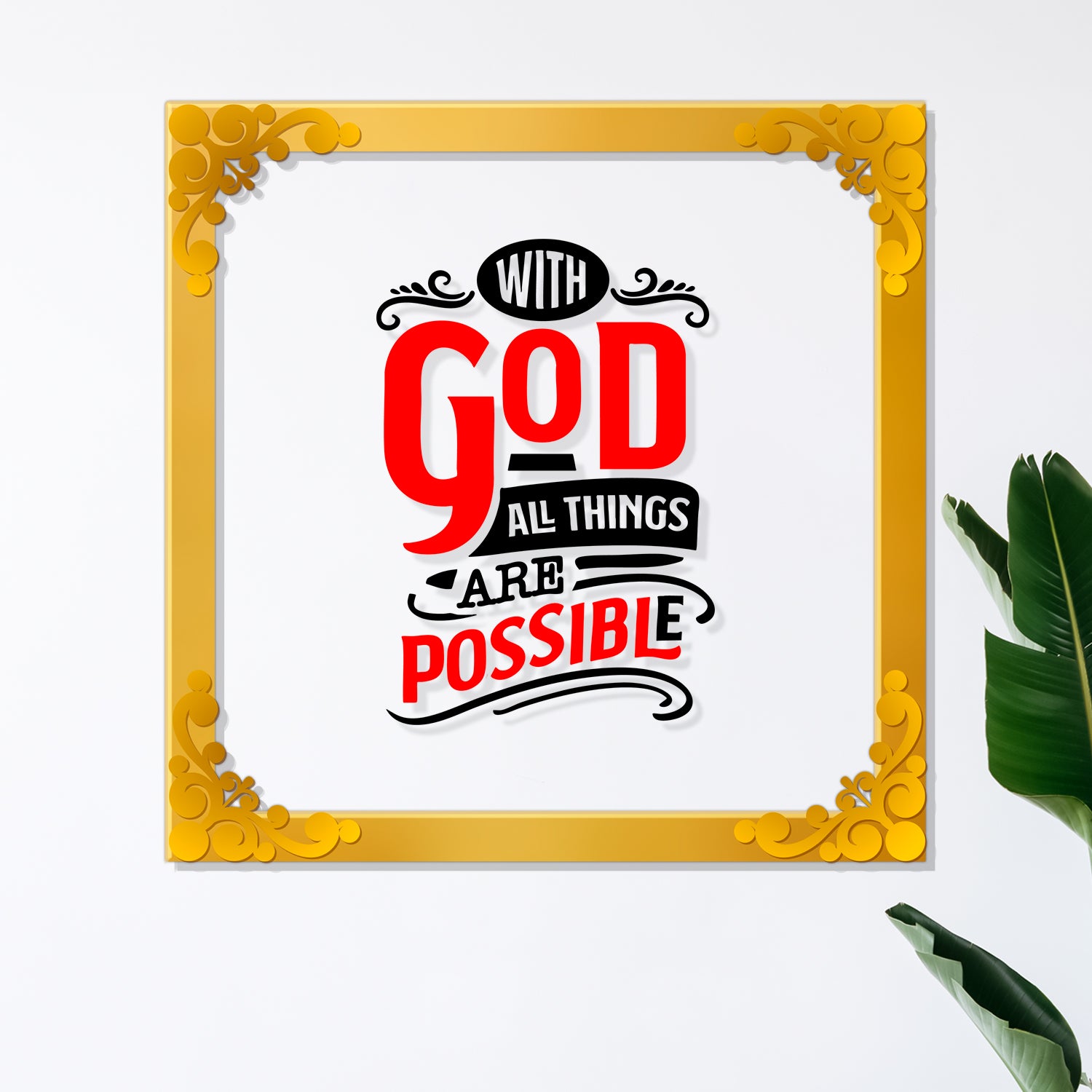 God make all things possible Golden Plaque for Gifting, Wall Decor Clear UV print with Golden Border-160 - 8x8 inch
