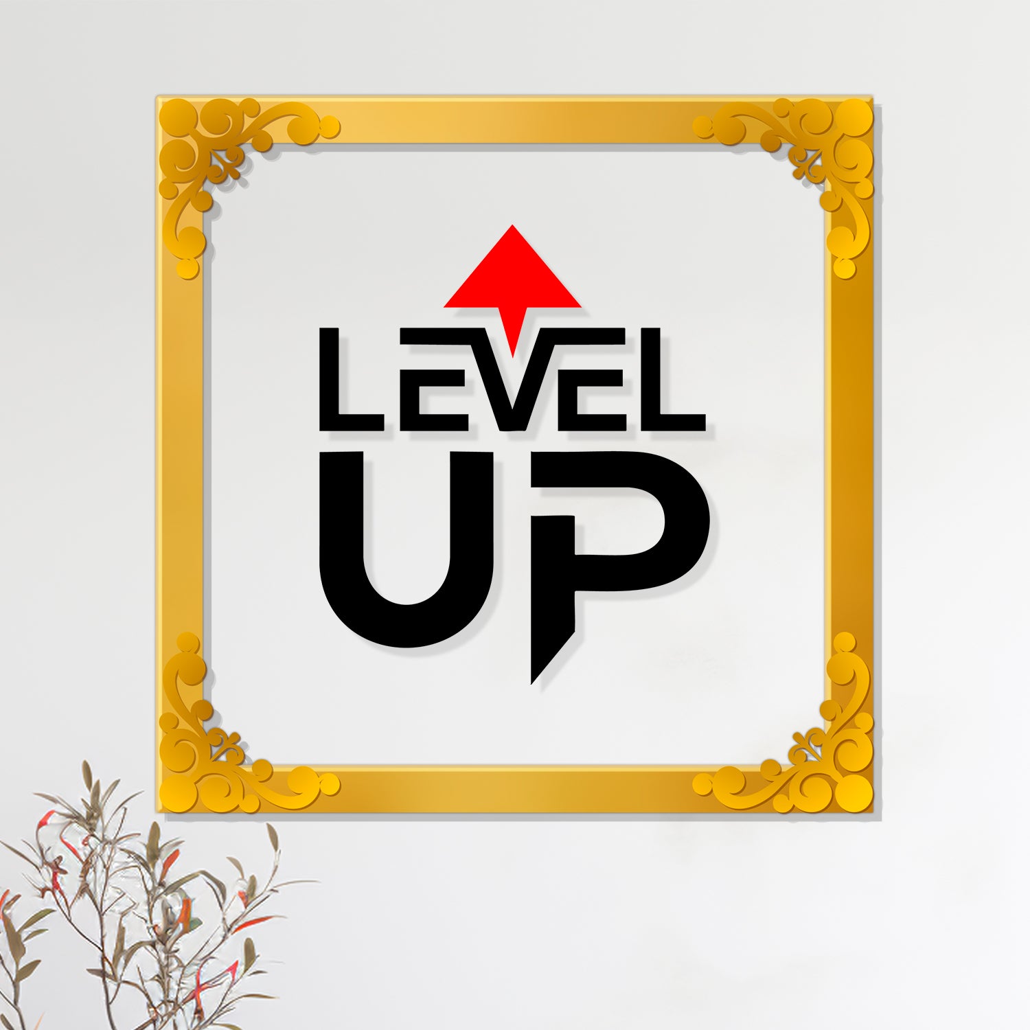 Level up Golden Plaque for Gifting, Wall Decor Clear UV print with Golden Border-49 - 8x8 inch