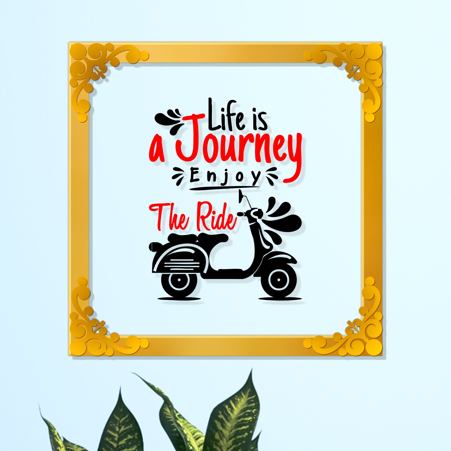 Life is a journey enjoy the ride Golden Plaque for Gifting, Wall Décor Clear UV print with Golden Border-217 - 8x8 inch