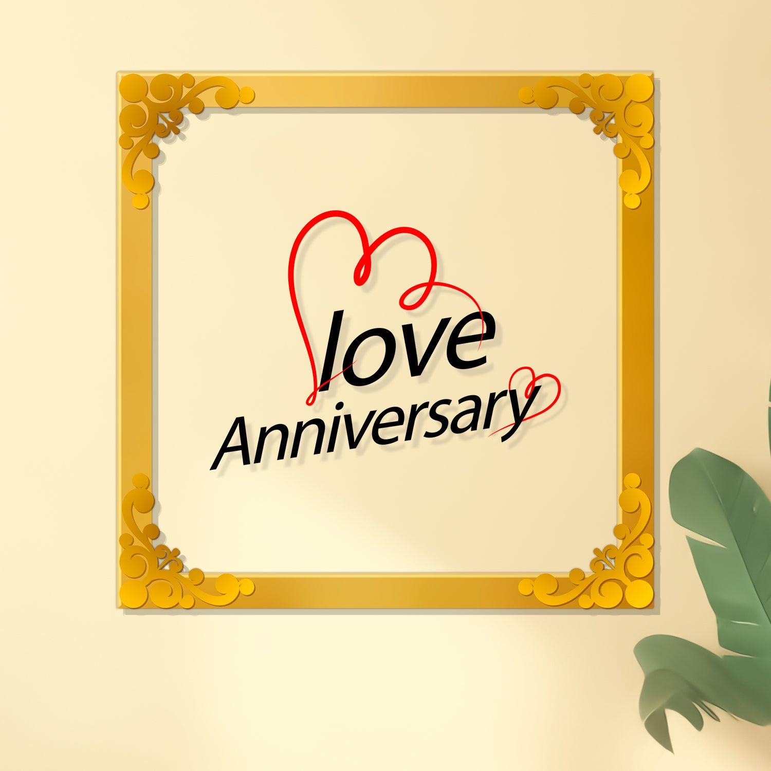 Love anniversary Golden Plaque for Gifting, Wall Décor Clear UV print with Golden Border-345 - 8x8 inch