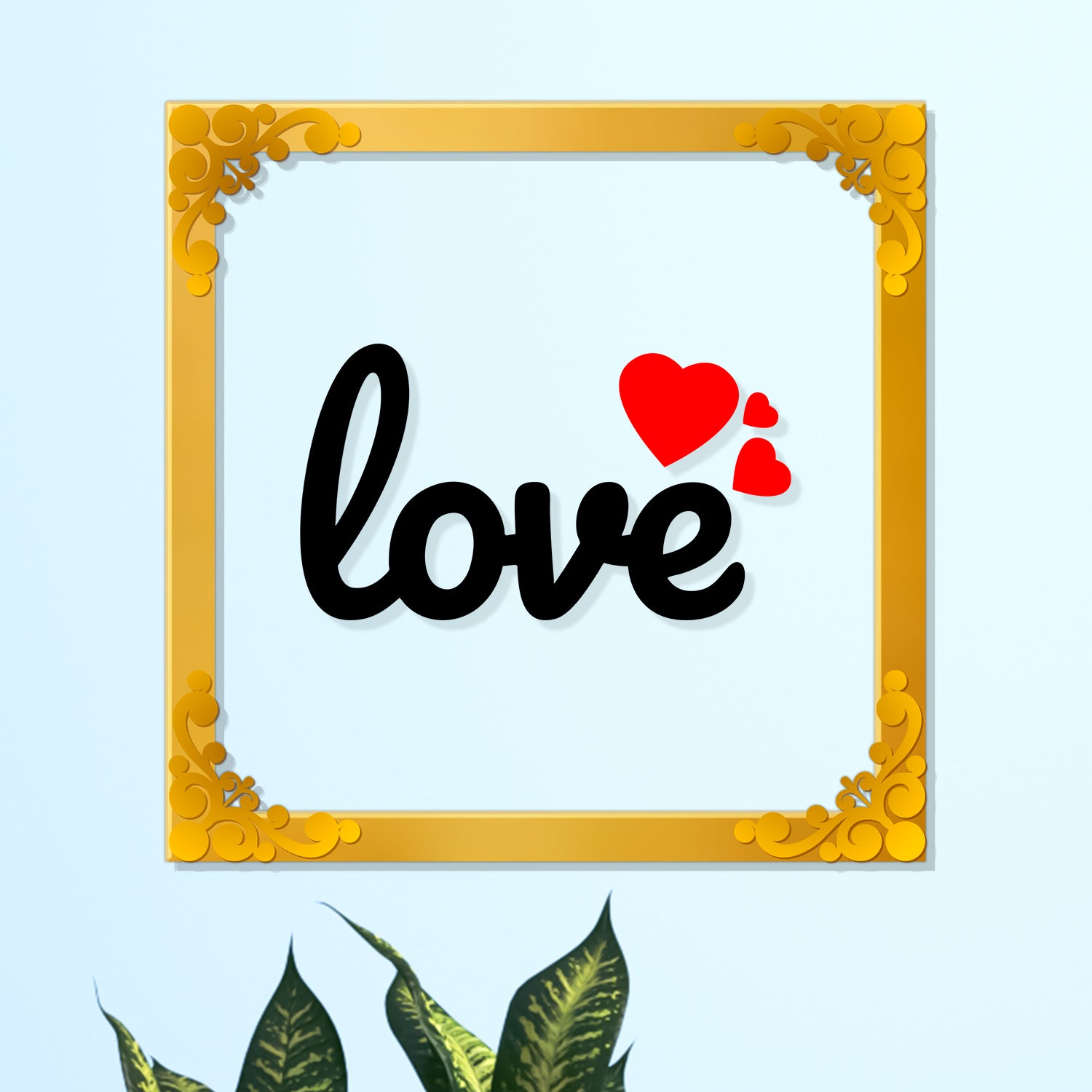 Love Golden Plaque for Gifting, Wall Decor Clear UV print with Golden Border-127 - 8x8 inch
