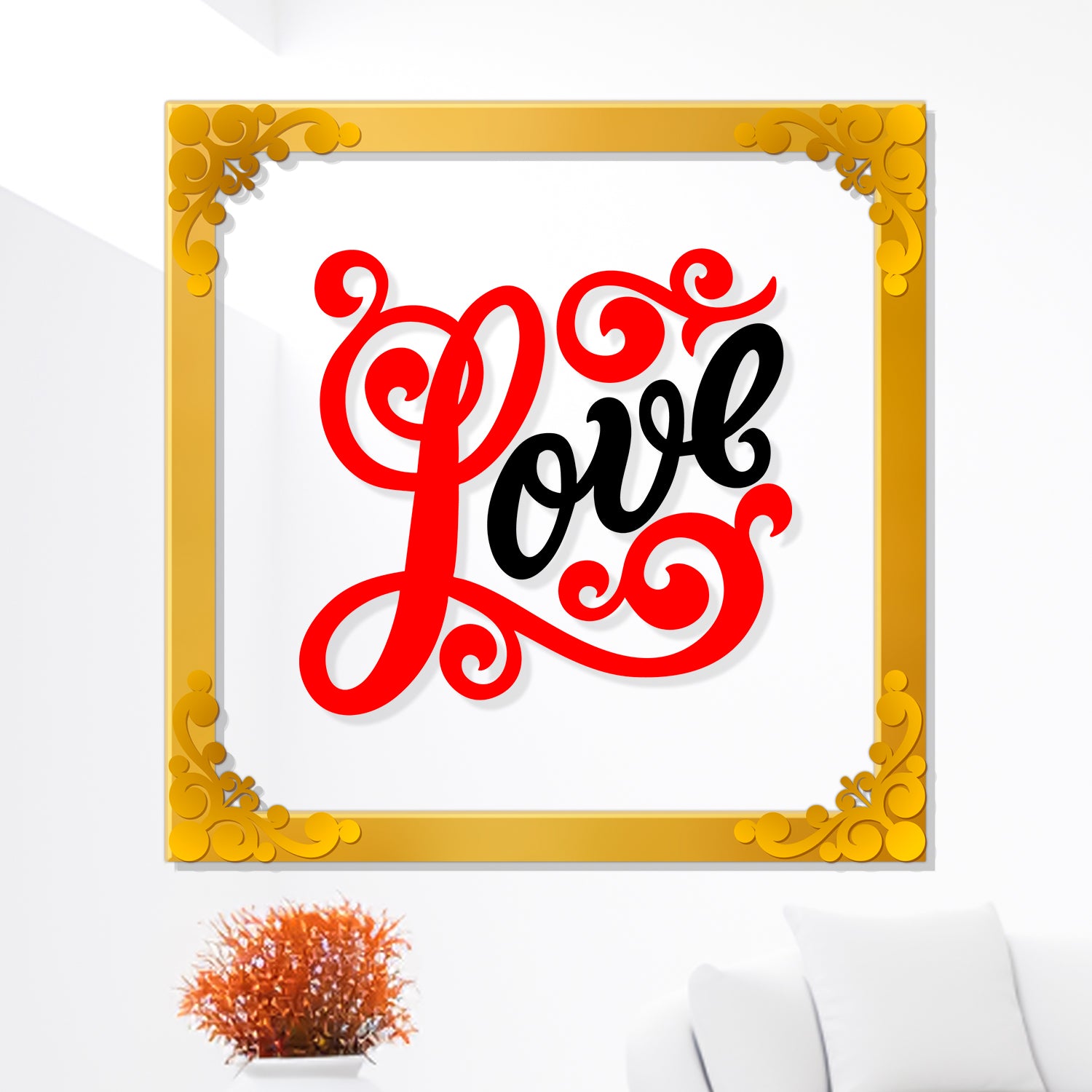 Love Golden Plaque for Gifting, Wall Decor Clear UV print with Golden Border-98 - 8x8 inch