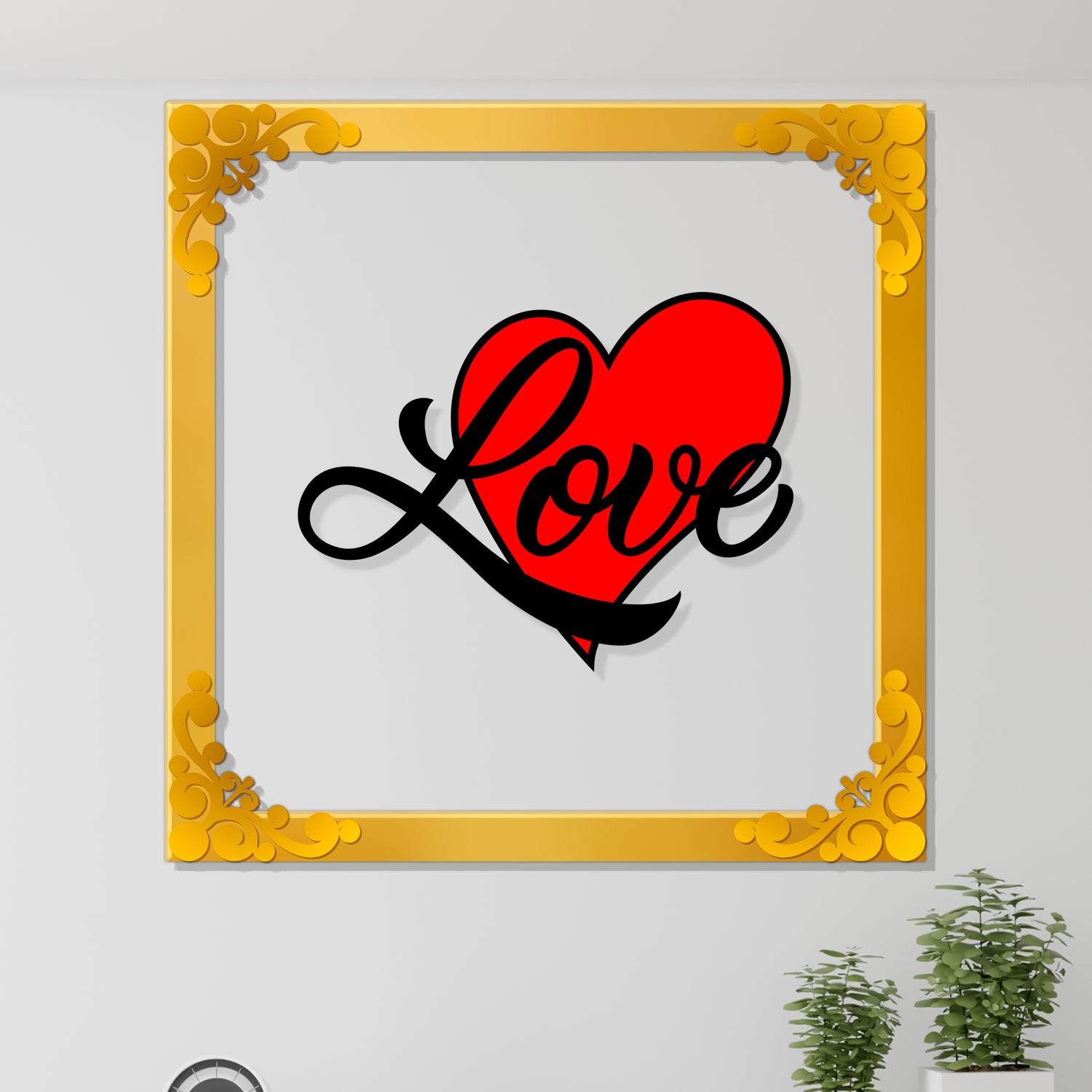 Love with heart Golden Plaque for Gifting, Wall Décor Clear UV print with Golden Border-284 - 8x8 inch