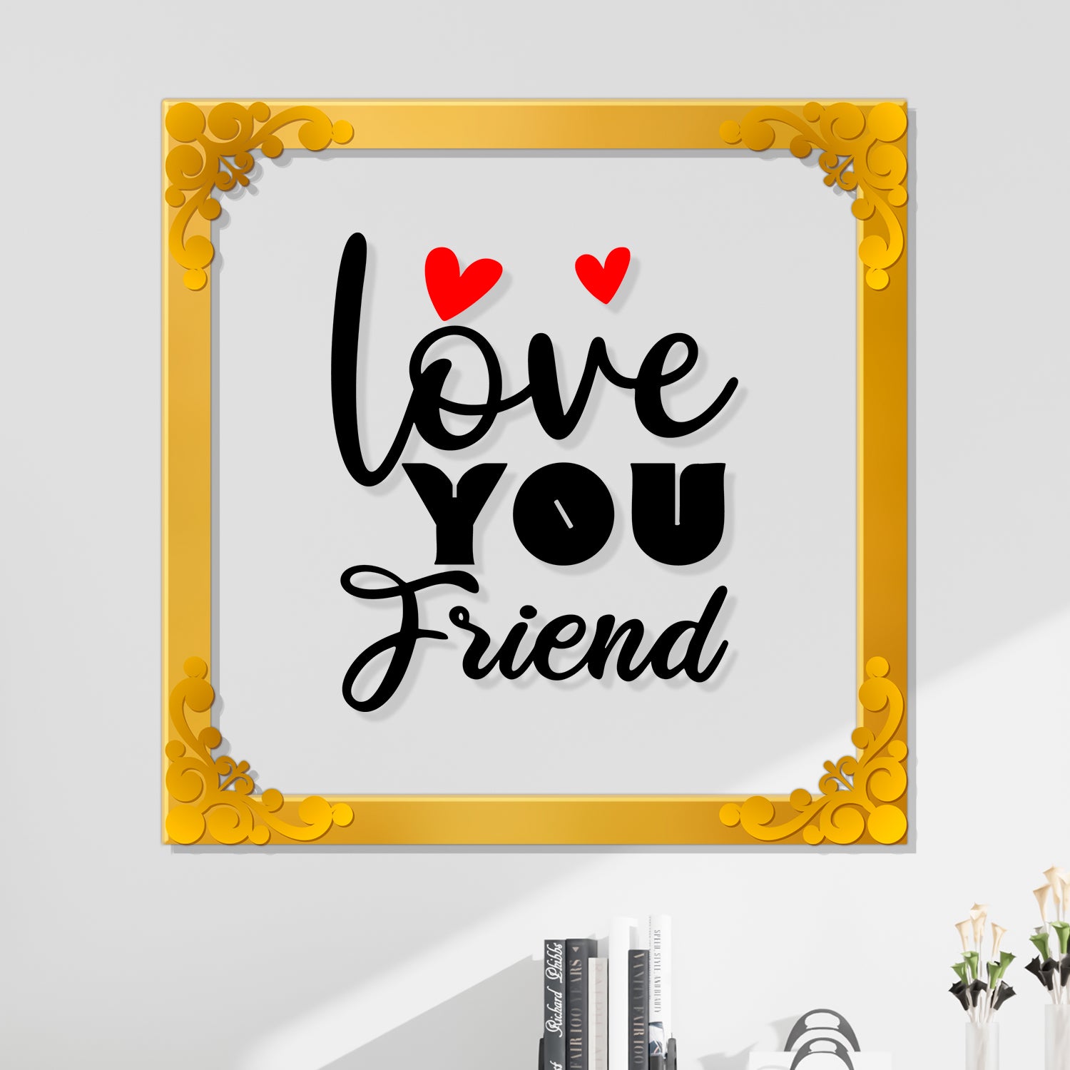 Love you friend Golden Plaque for Gifting, Wall Decor Clear UV print with Golden Border-76 - 8x8 inch