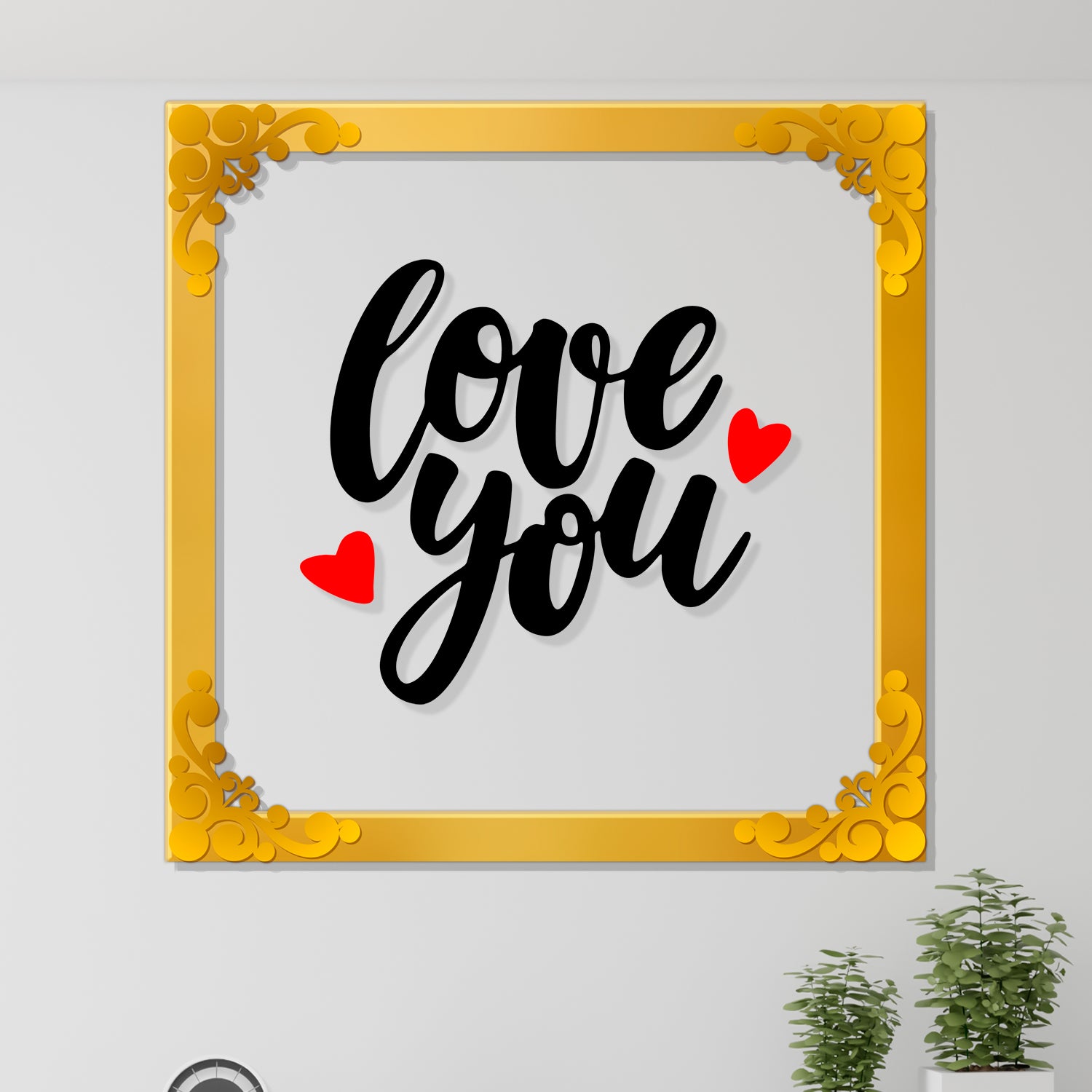 Love you Golden Plaque for Gifting, Wall Decor Clear UV print with Golden Border-34 - 8x8 inch