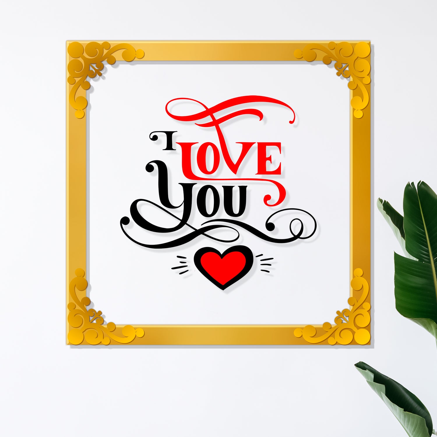 Love you Golden Plaque for Gifting, Wall Decor Clear UV print with Golden Border-40 - 8x8 inch