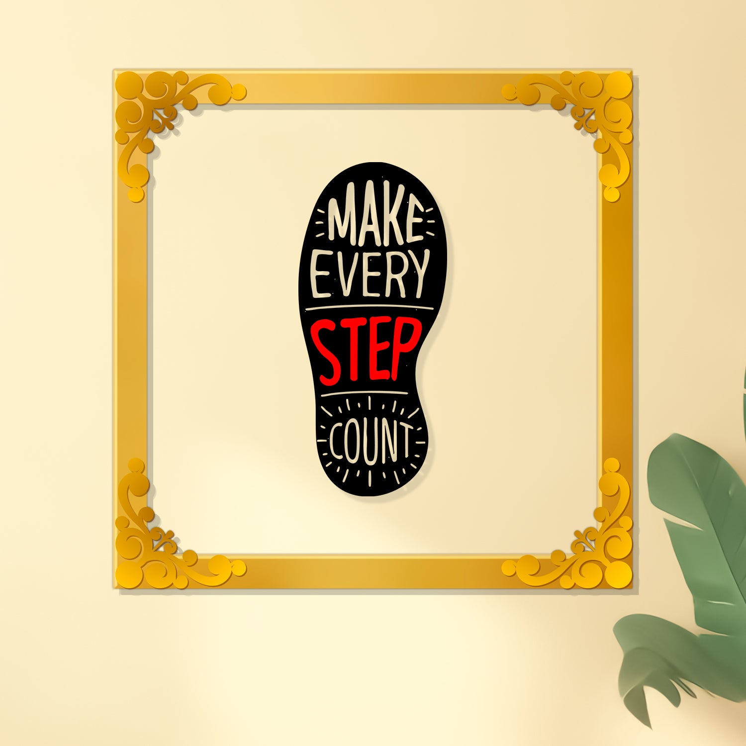 Make every step count Golden Plaque for Gifting, Wall Decor Clear UV print with Golden Border-45 - 8x8 inch