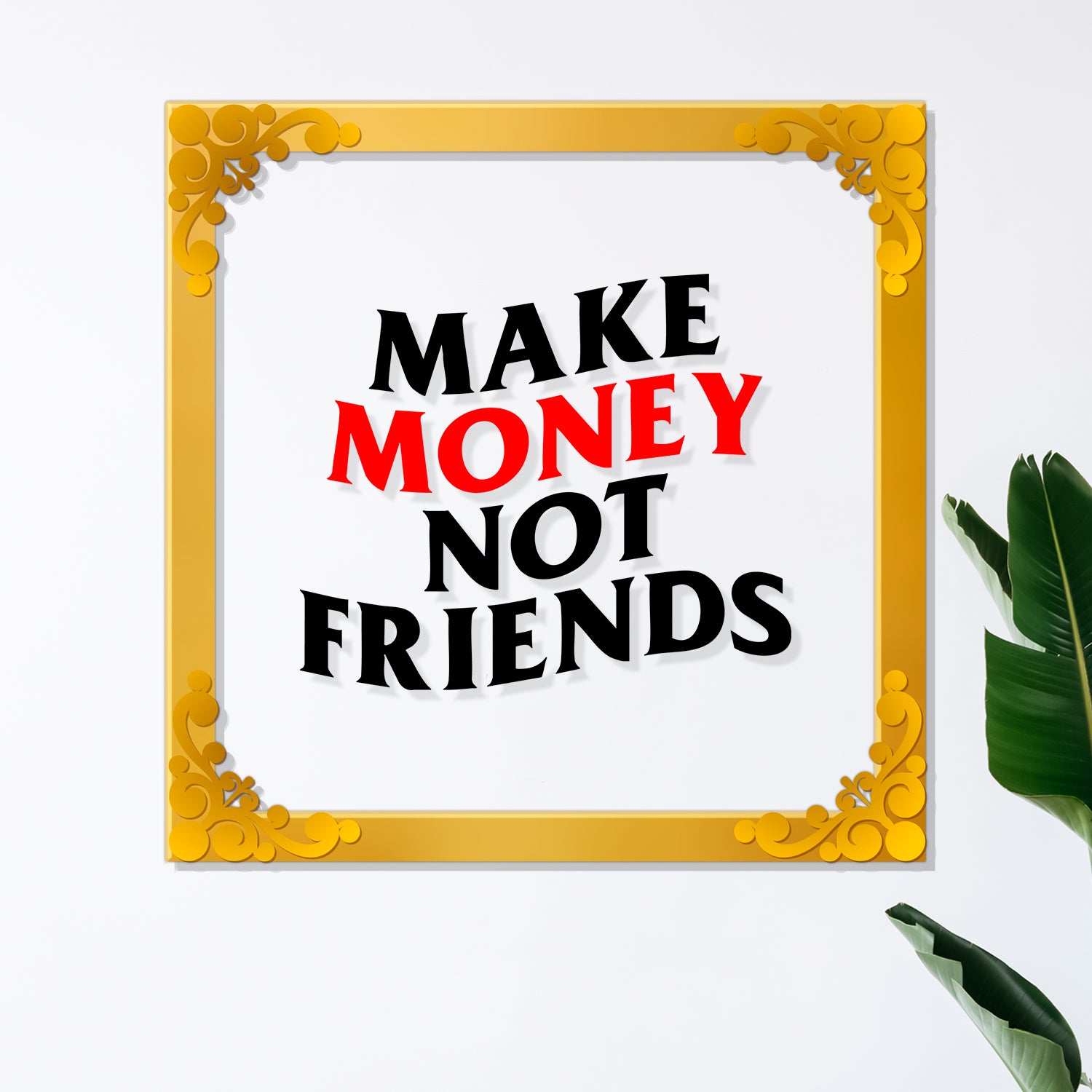 Make money not friends Golden Plaque for Gifting, Wall Decor Clear UV print with Golden Border-10 - 8x8 inch