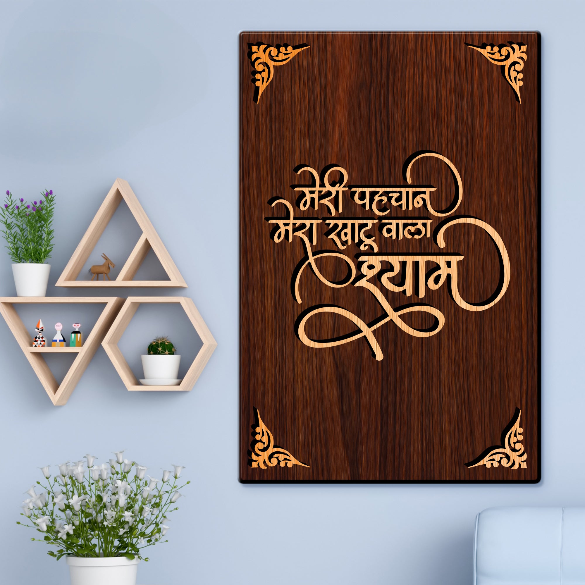Meri Pehchan Khatu Shyam For Gifting and Home Decor Wooden Wall Decor, Wall Hanging - 76 - 8x12