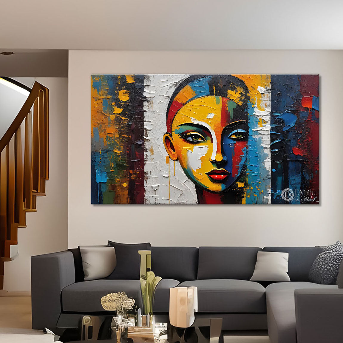 Modern girl face painting Canvas Painting - Design - Modern-L-101 - Without Frame - Only Printed Canvas / 18x30 inch