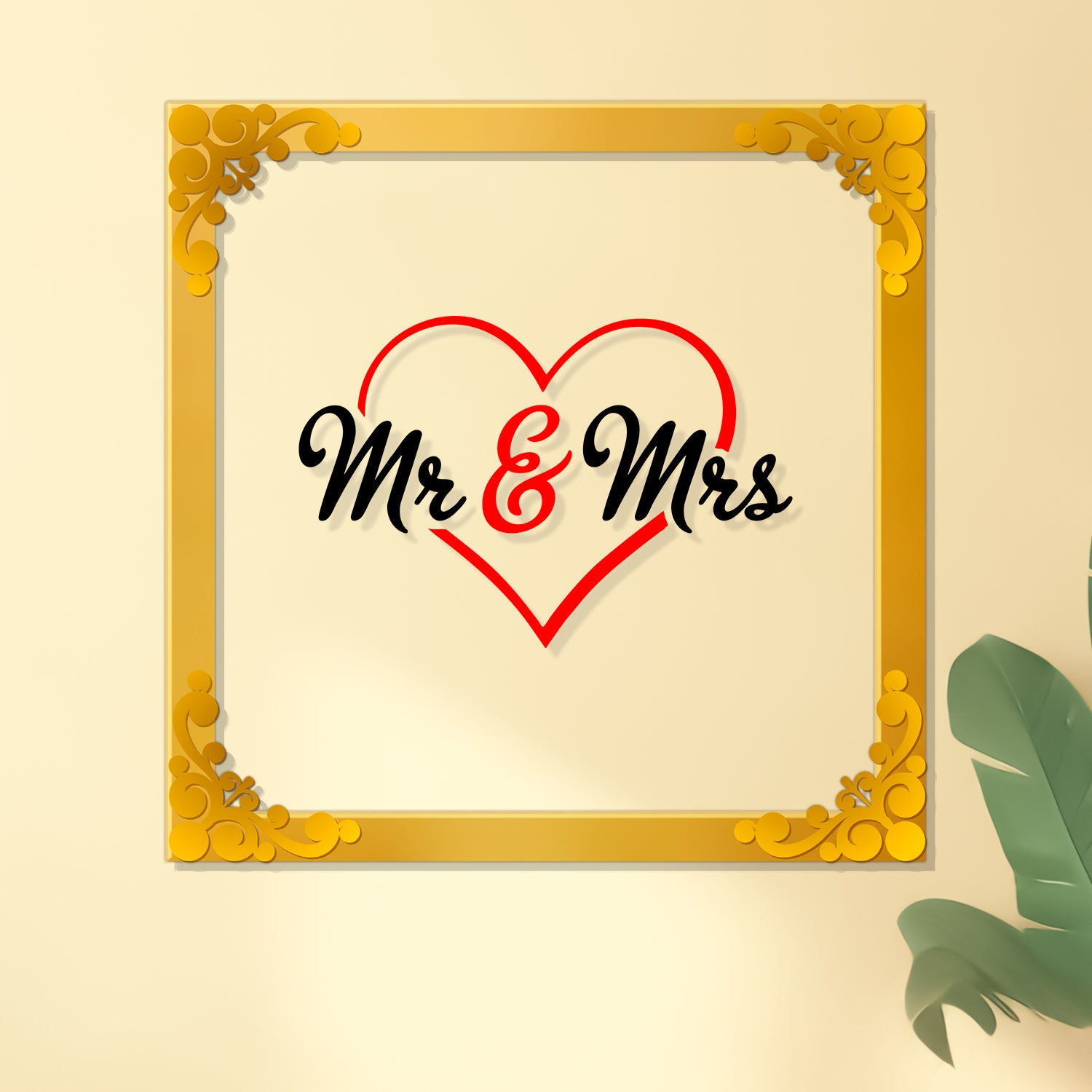 MR.& MRS. Golden Plaque for Gifting, Wall Decor Clear UV print with Golden Border-175 - 8x8 inch