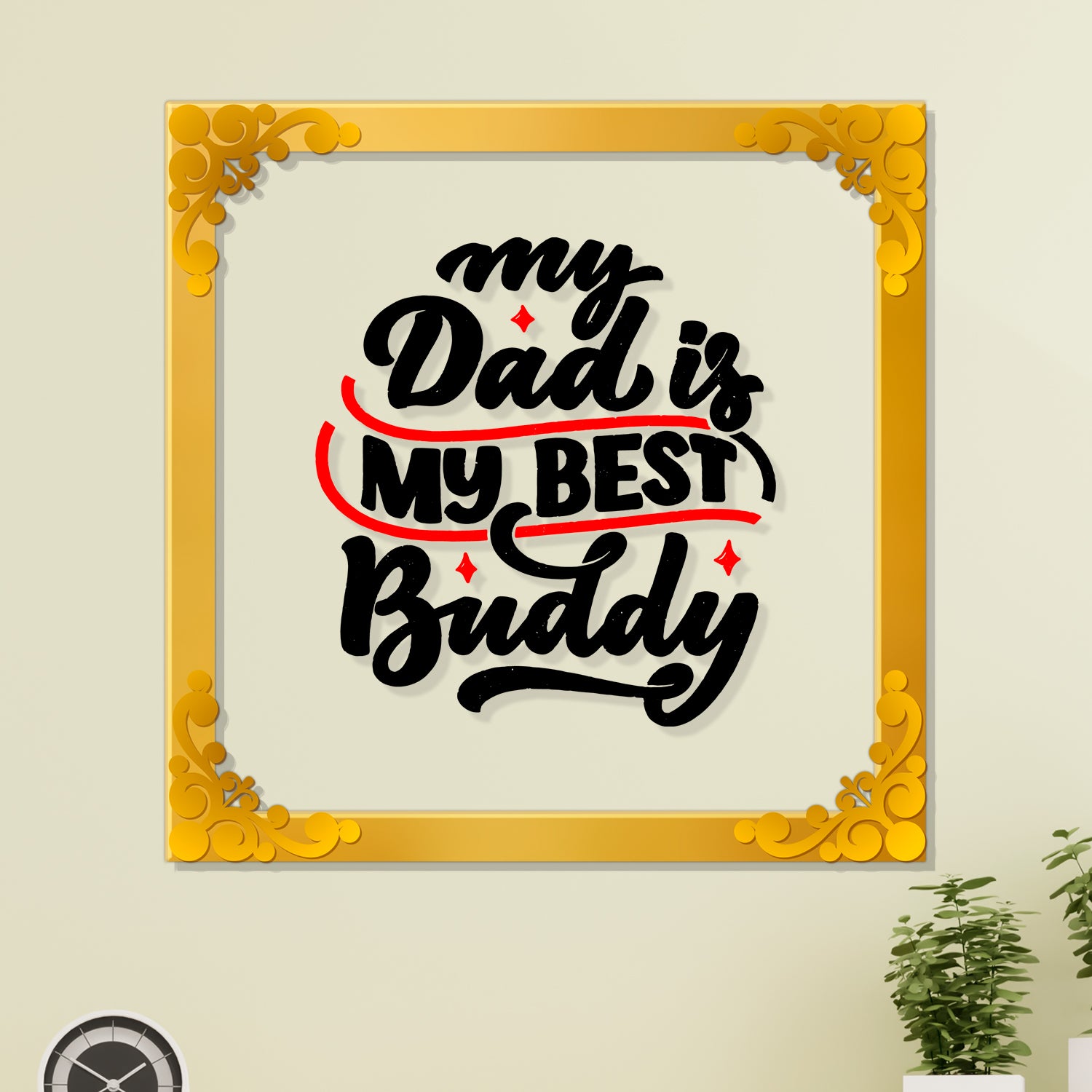 My dad is my best buddy Golden Plaque for Gifting, Wall Décor Clear UV print with Golden Border-342 - 8x8 inch