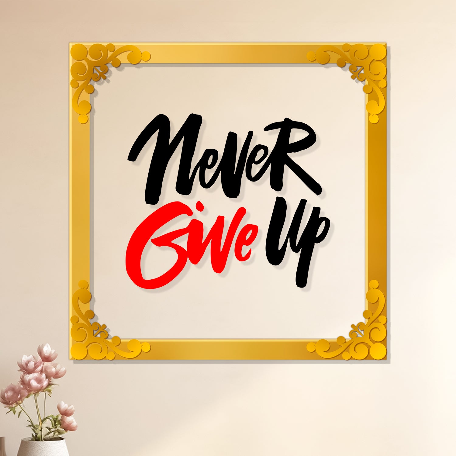 Never give up Golden Plaque for Gifting, Wall Décor Clear UV print with Golden Border-221 - 8x8 inch