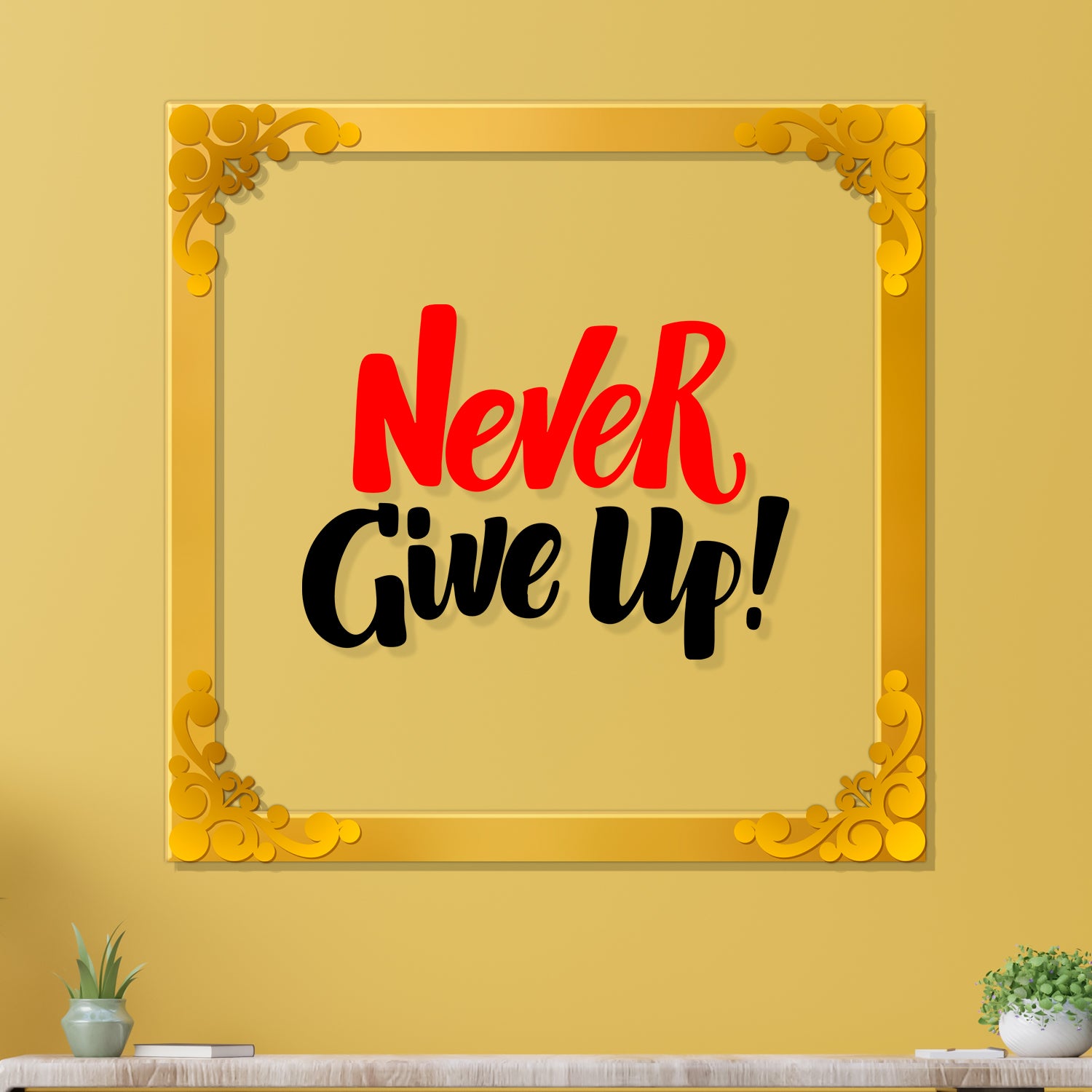 Never give up Golden Plaque for Gifting, Wall Décor Clear UV print with Golden Border-223 - 8x8 inch