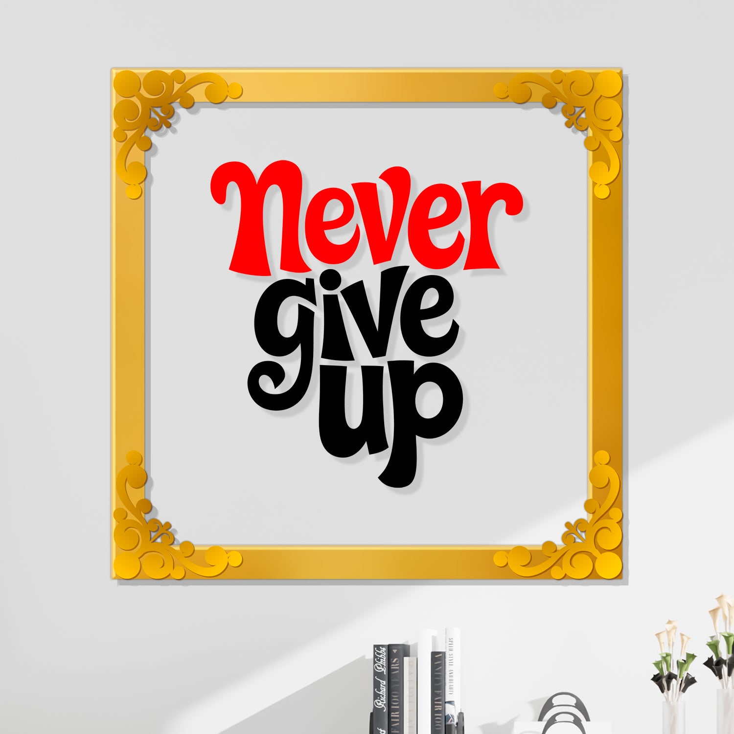 Never give up Golden Plaque for Gifting, Wall Décor Clear UV print with Golden Border-266 - 8x8 inch