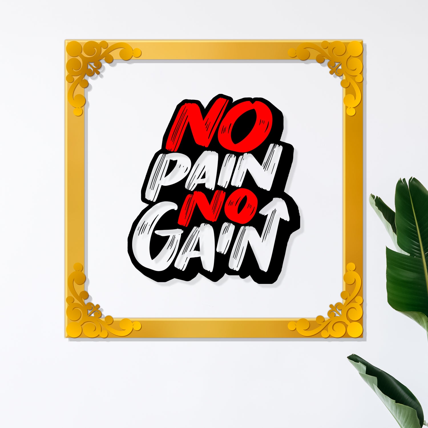 No pain no gain Golden Plaque for Gifting, Wall Decor Clear UV print with Golden Border-90 - 8x8 inch