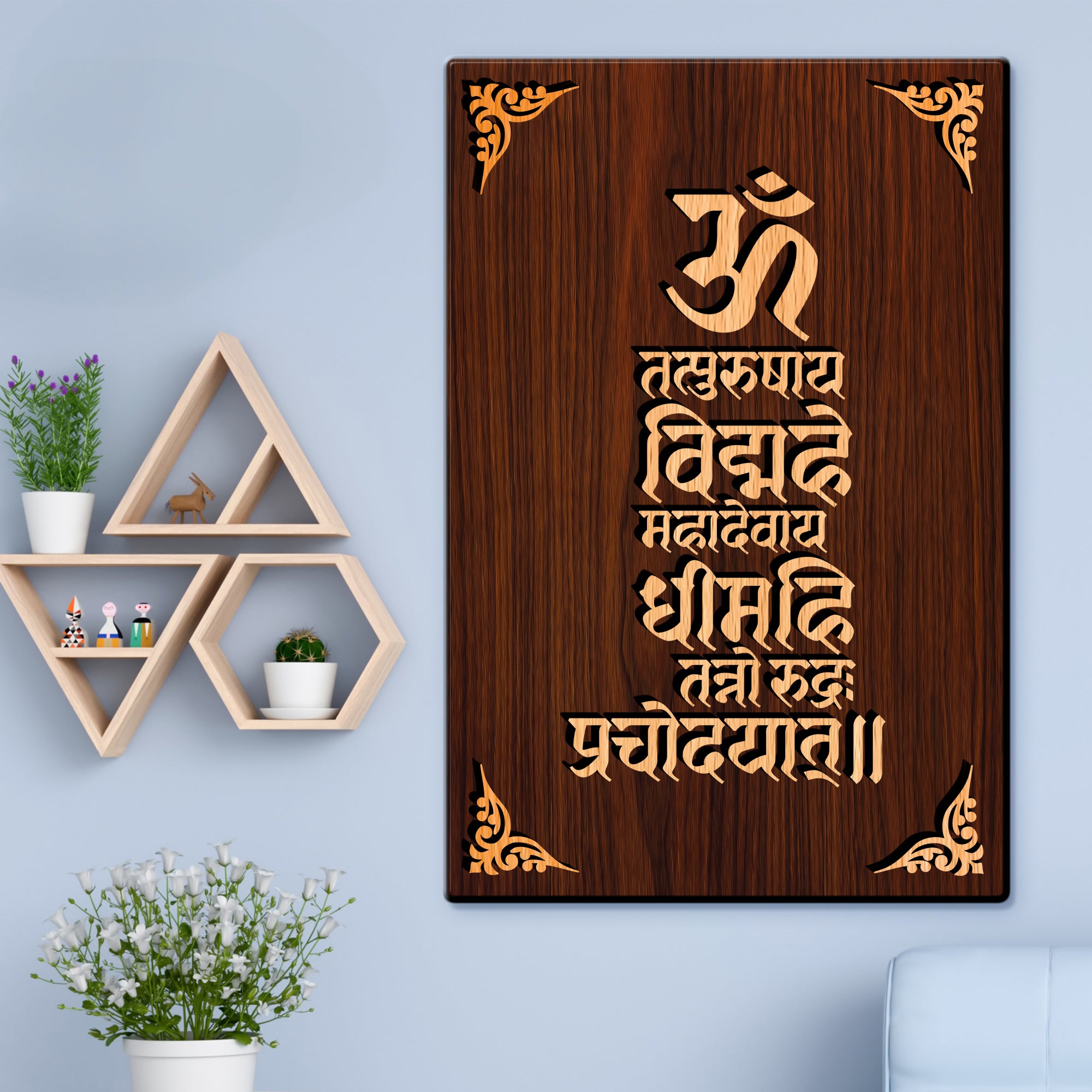 Om Tatpurushaye Mantra For Gifting and Home Decor Wooden Wall Decor, Wall Hanging - 206 - 8x12