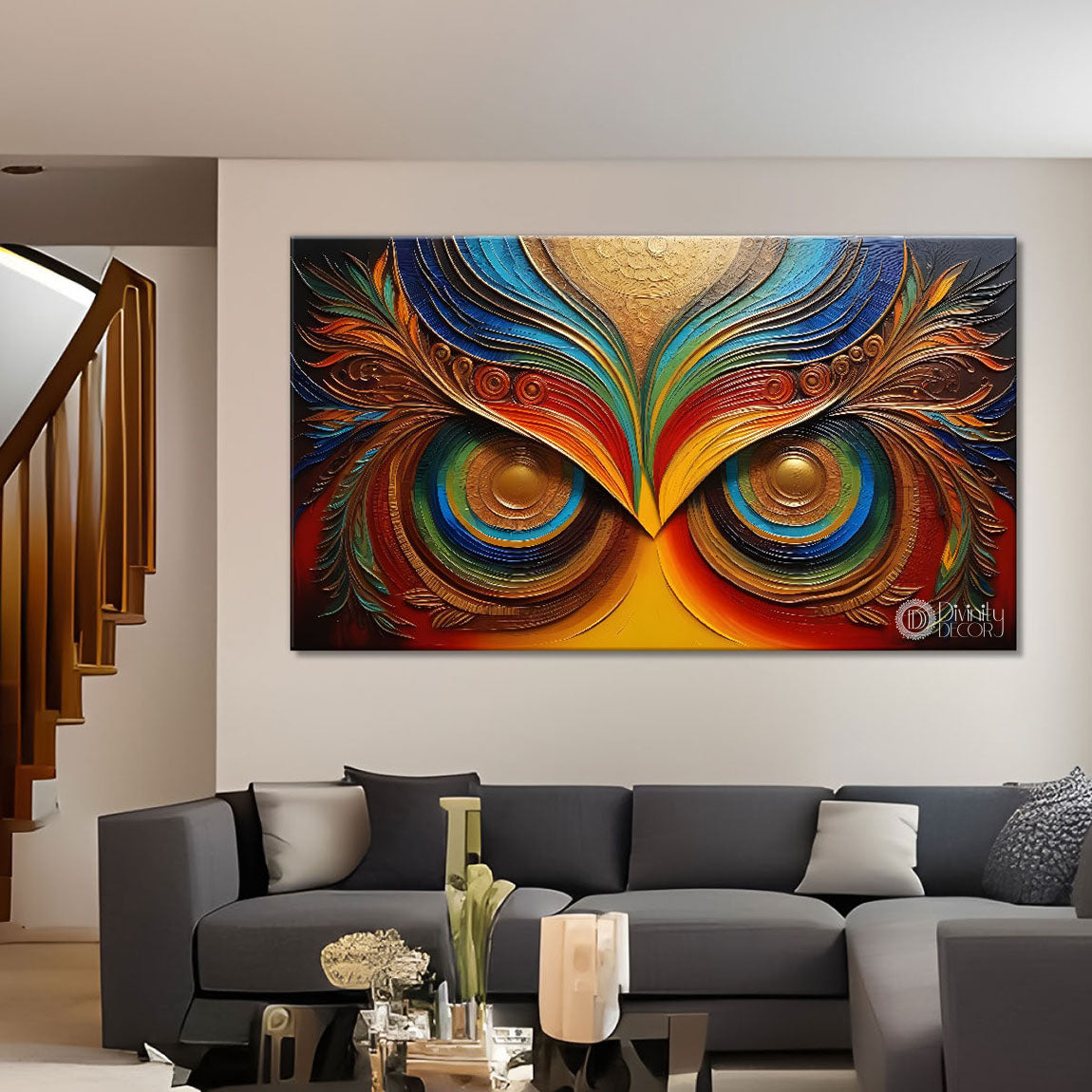 Owl eyes textured modern art Canvas Painting - Design - Modern-L-43 - Without Frame - Only Printed Canvas / 18x30 inch