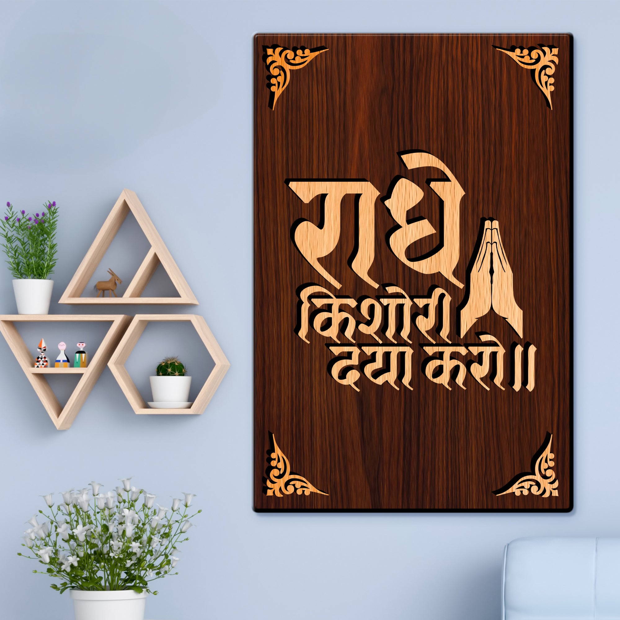 Radhe Kishori Daya Kro For Gifting and Home Decor Wooden Wall Decor, Wall Hanging - 52 - 8x12